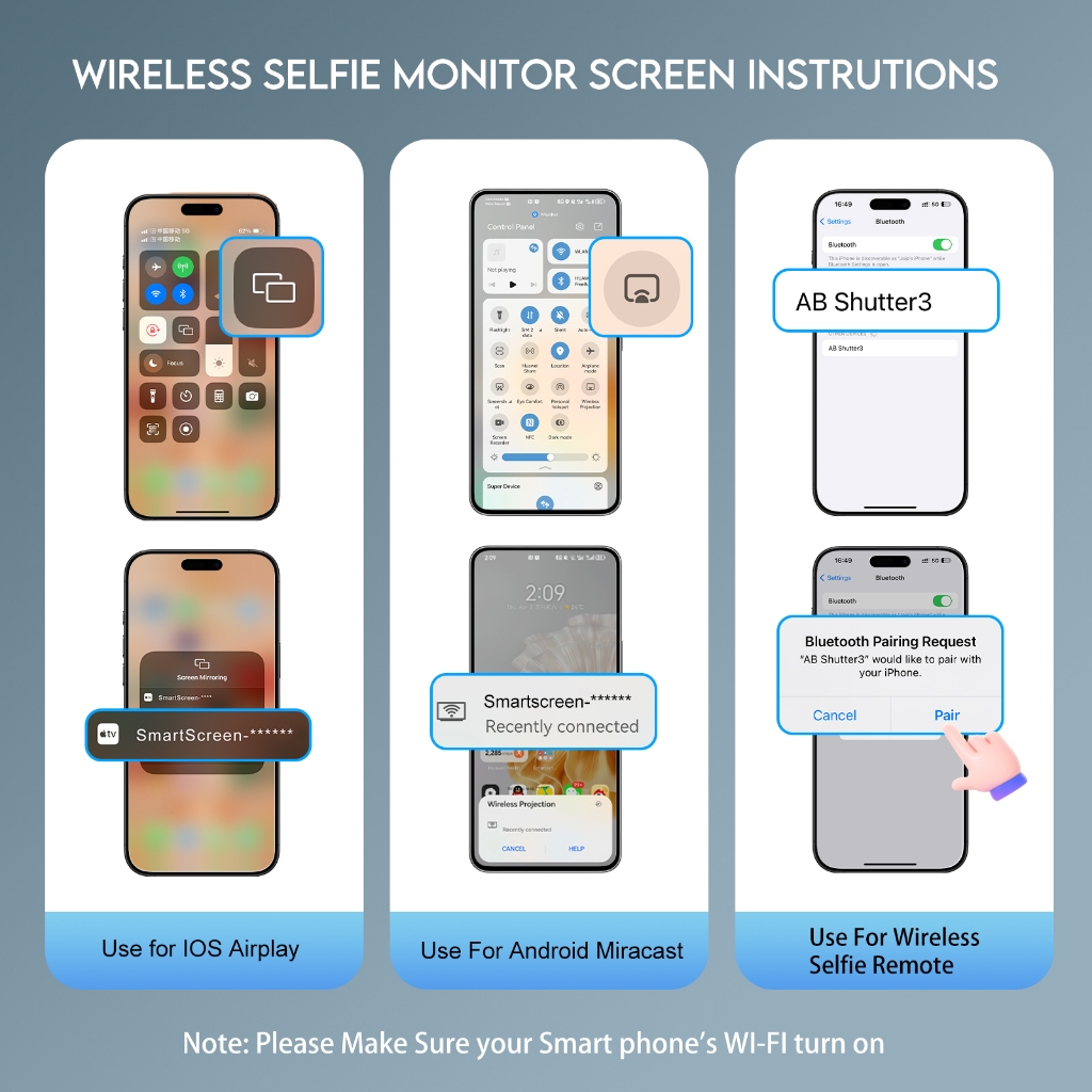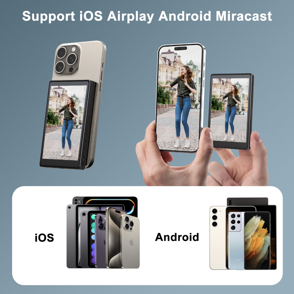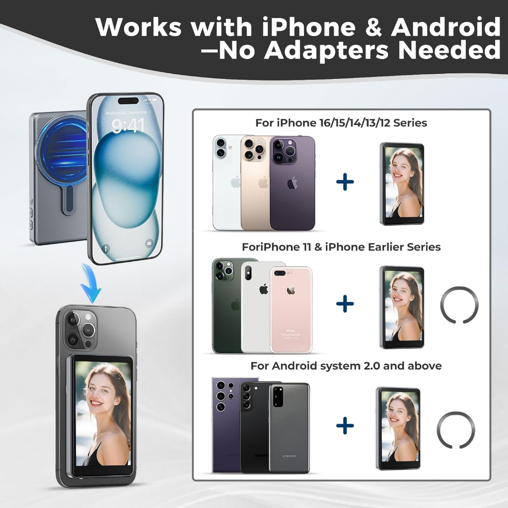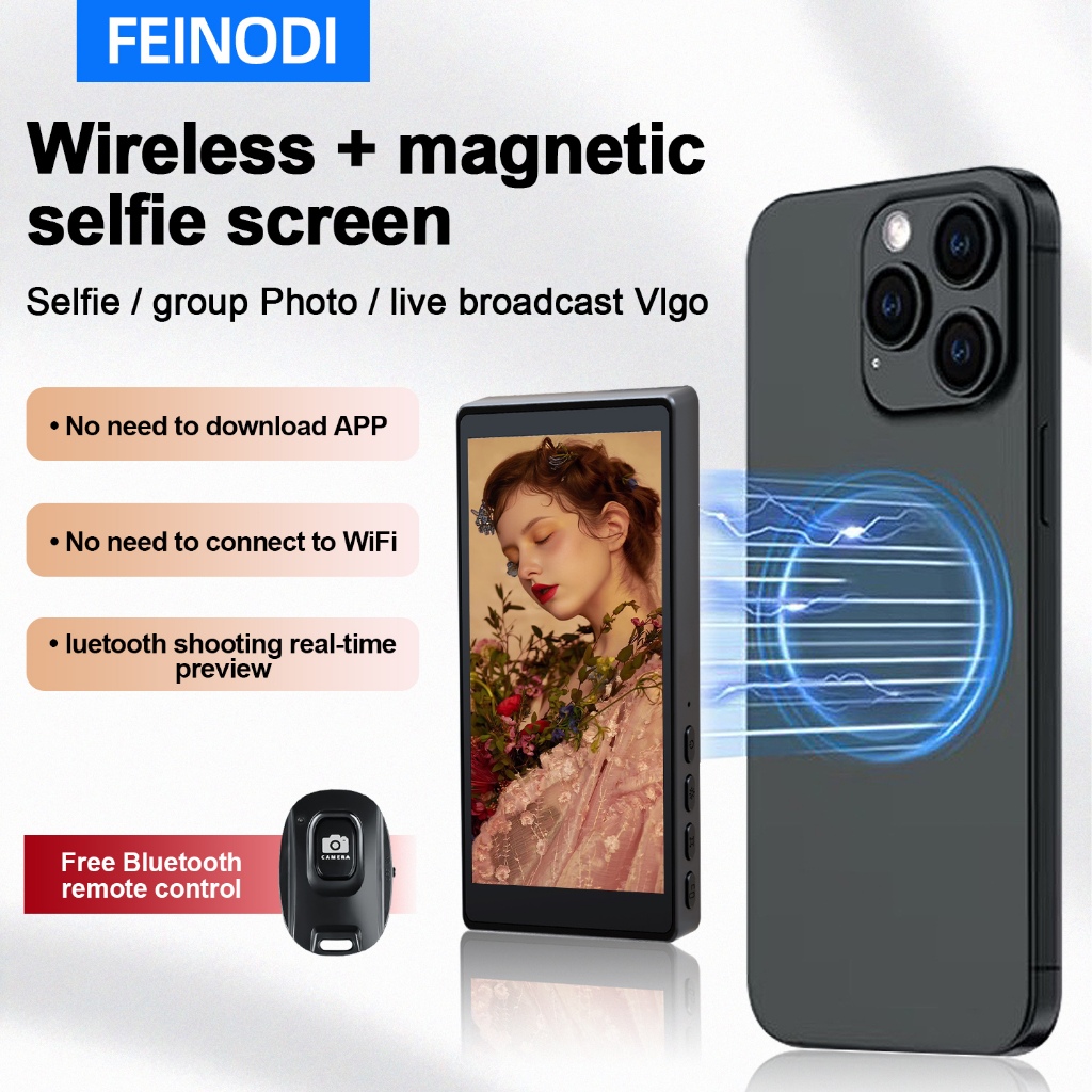 FEINODI Wireless Magnetic Selfie Screen HD Phone Screen, Screen Mirroring/Supports Vlog/Rear Camera Selfies/Live