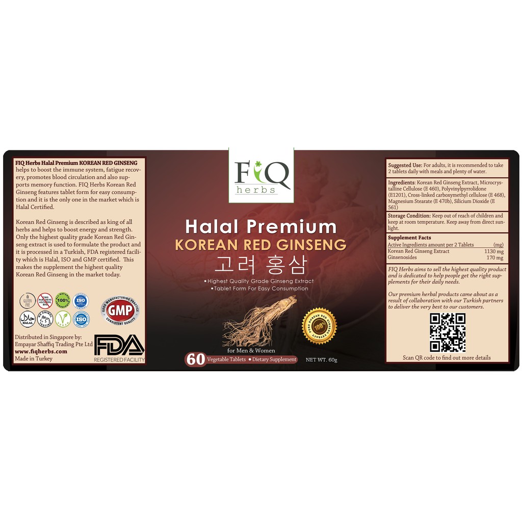 FIQ Herbs - Halal Premium Korean Red Ginseng - 60 Vegetable Tablets