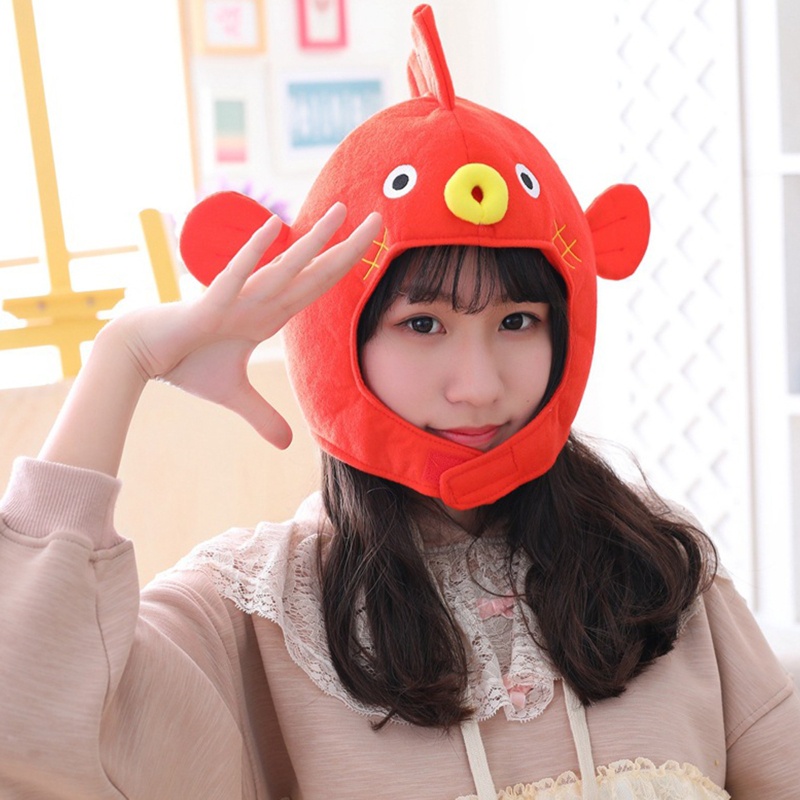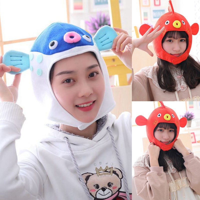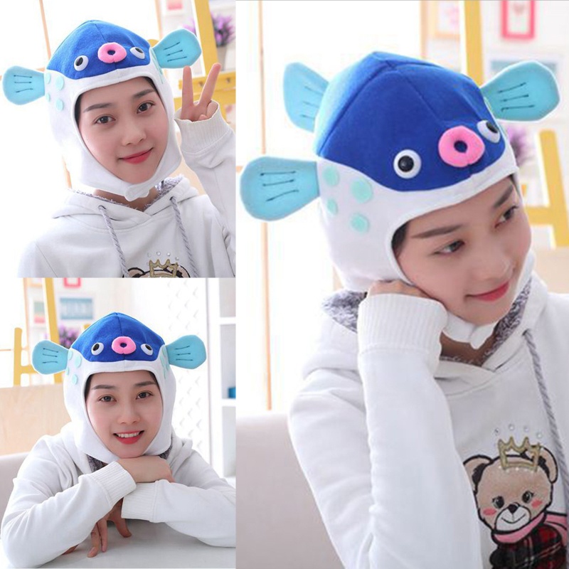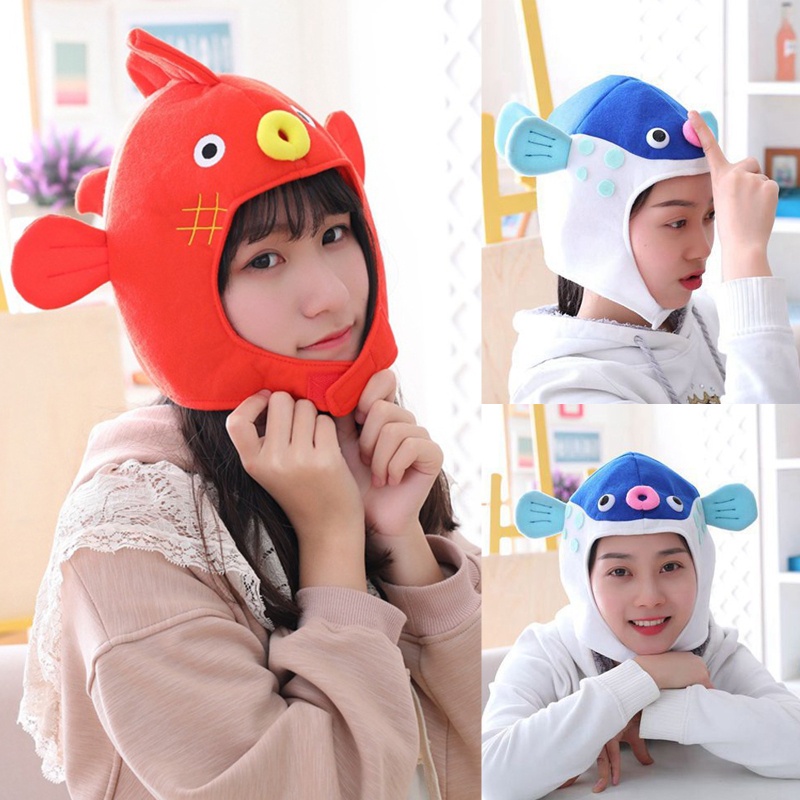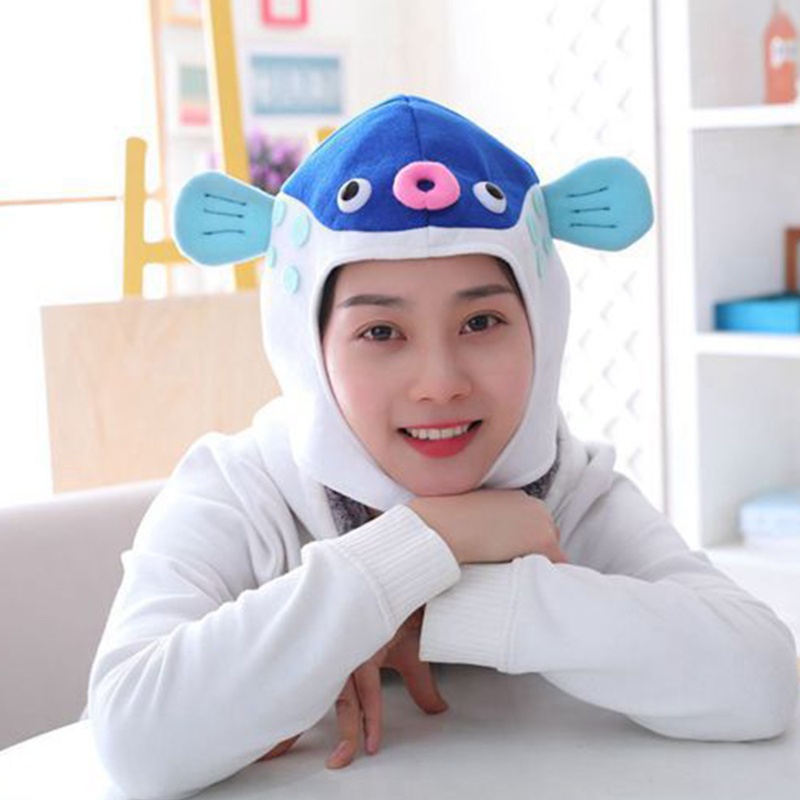 FL Plush Puffer Fish Hat 3D Halloween Animal Cosplay Costume Accessories for Adult