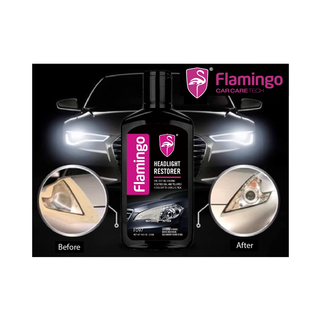FLAMINGO HEADLIGHT RESTORER CLEAN POLISH RESTORE CAR LAMP HEADLIGHT LENS 300ML