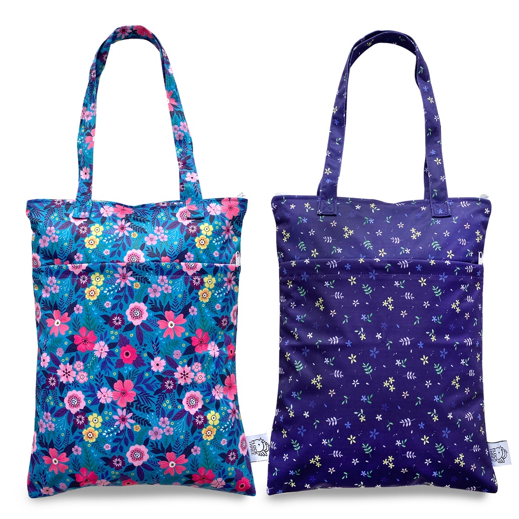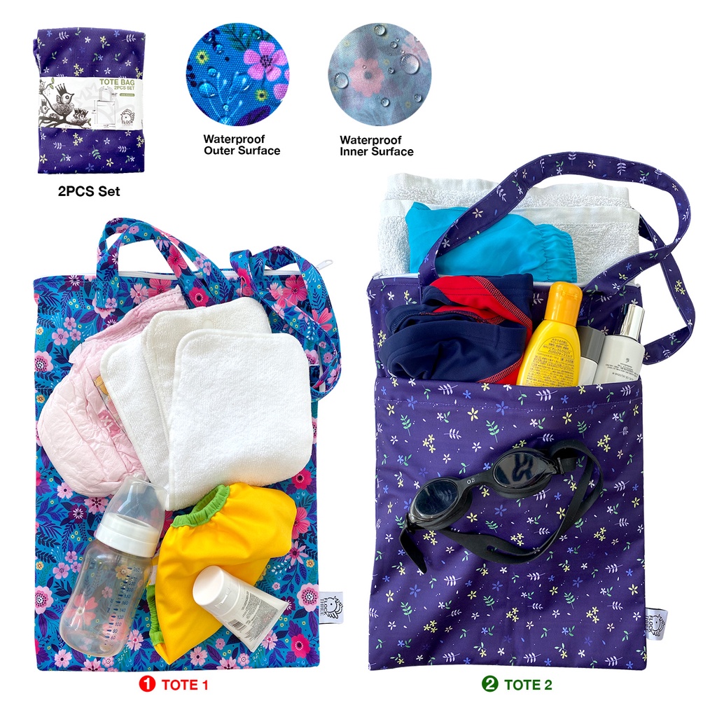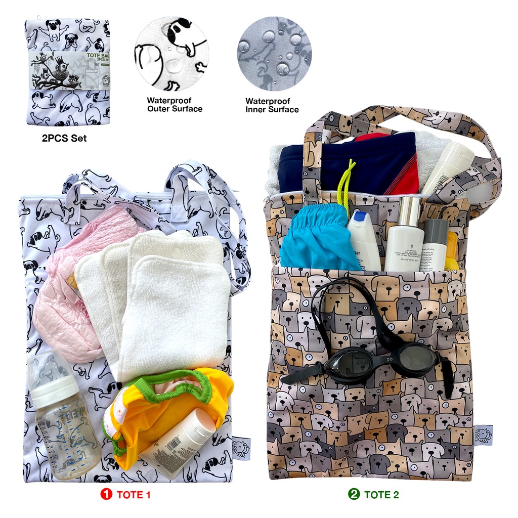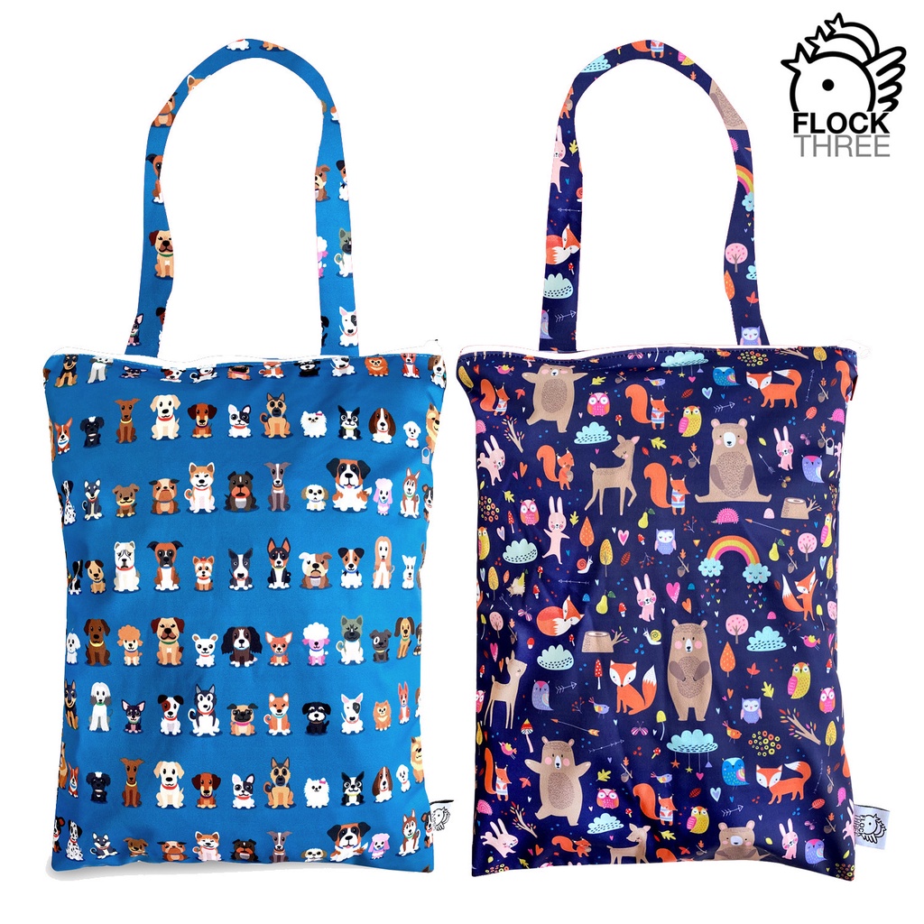 FLOCK THREE 2pcs Bundle Wet Dry Bag Waterproof Tote Reusable Baby Diapers Stroller Swimsuit Travel Small Large Size