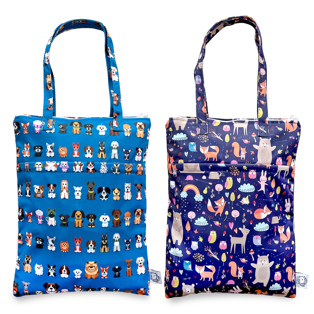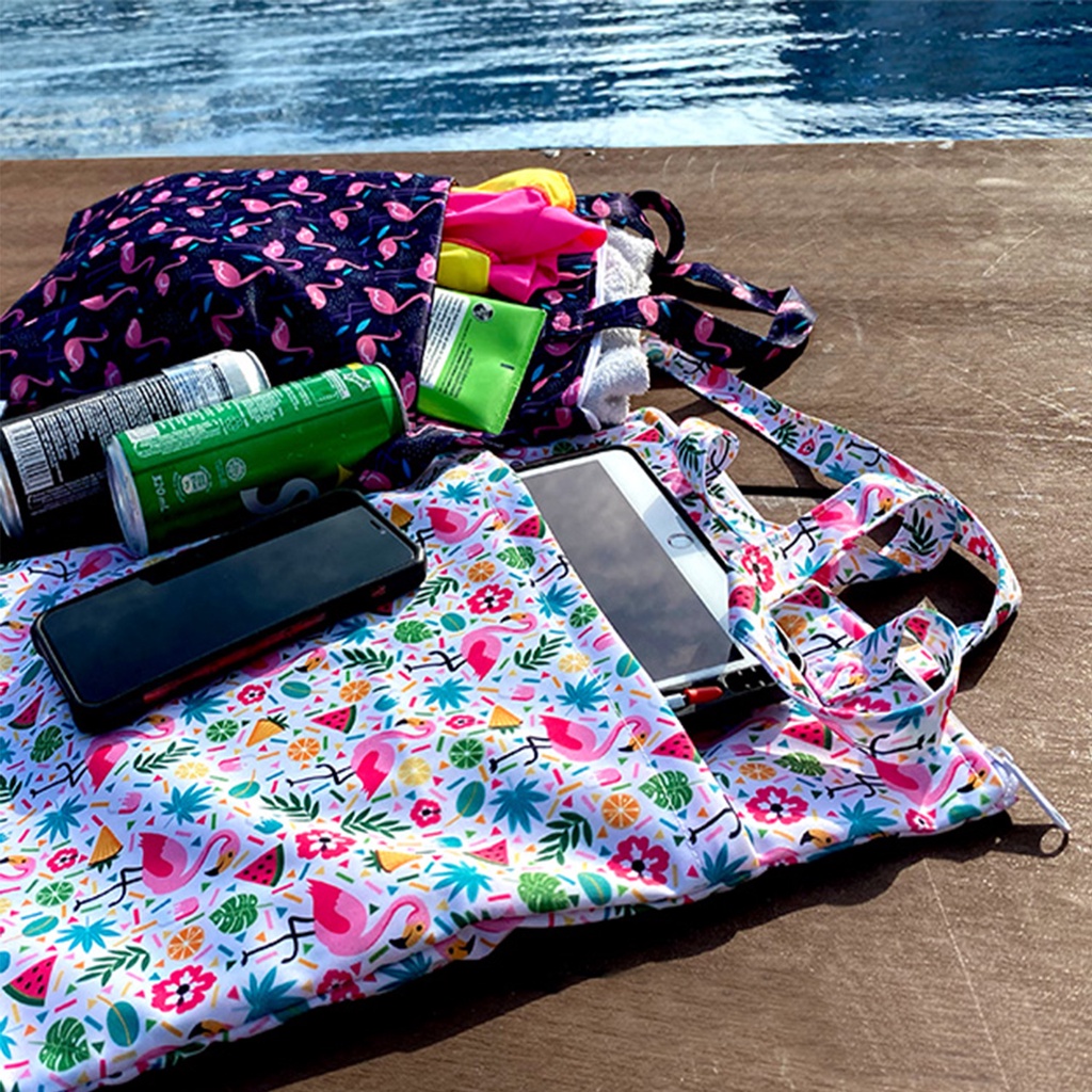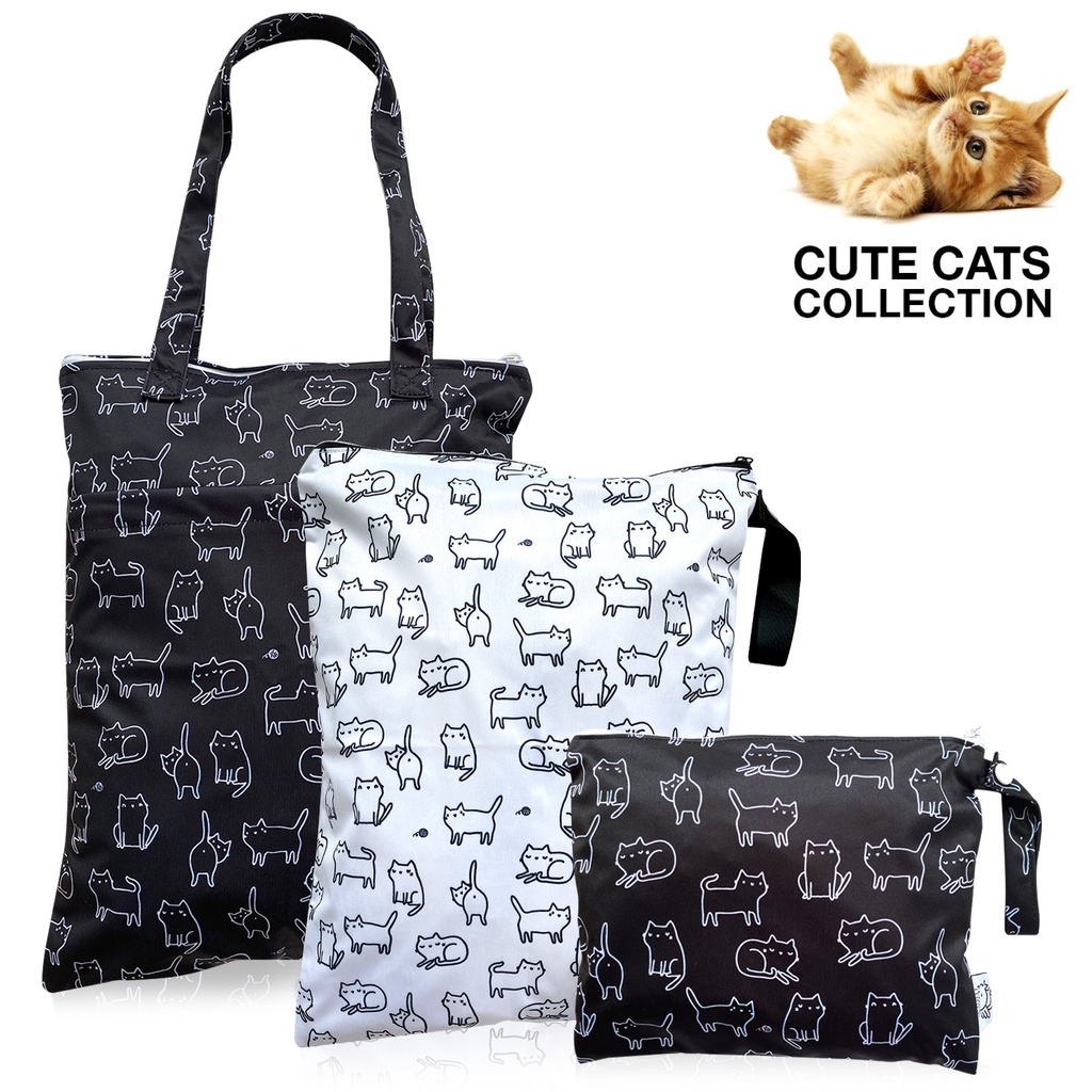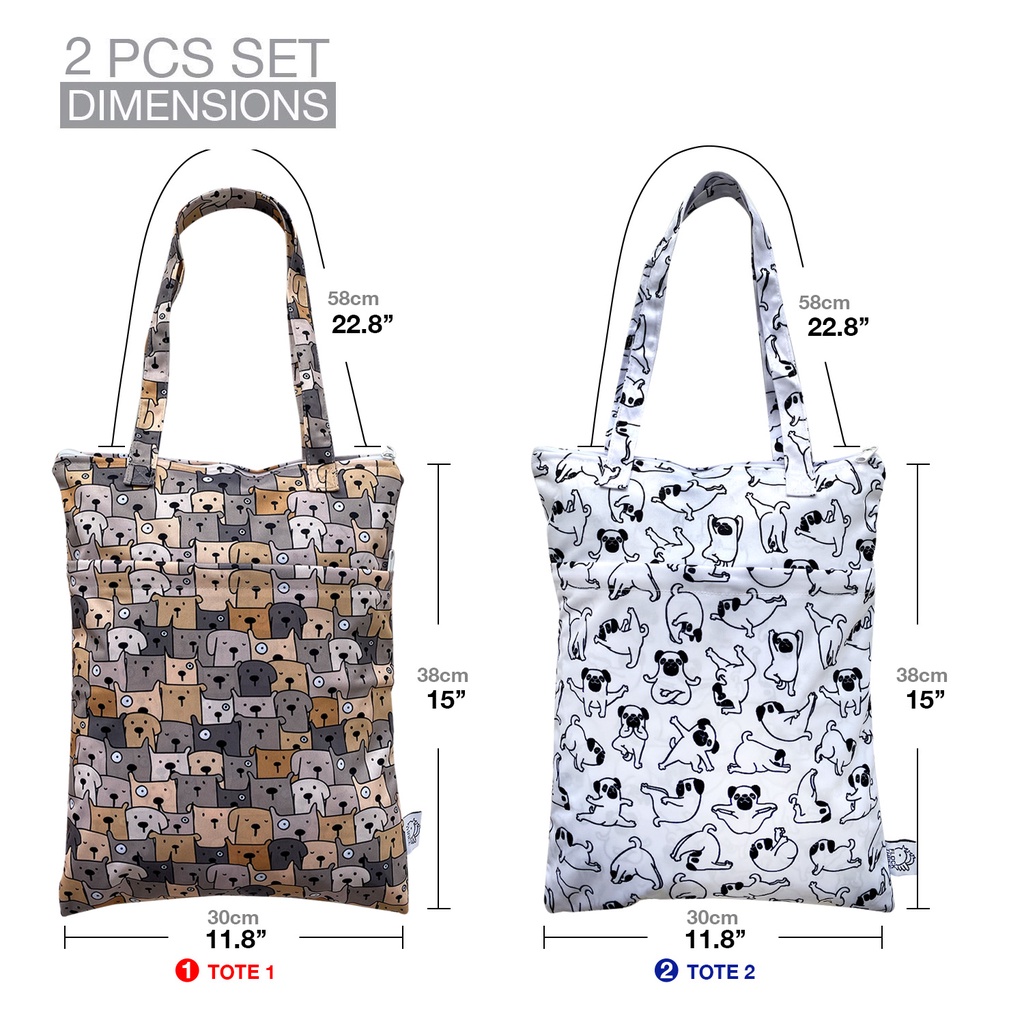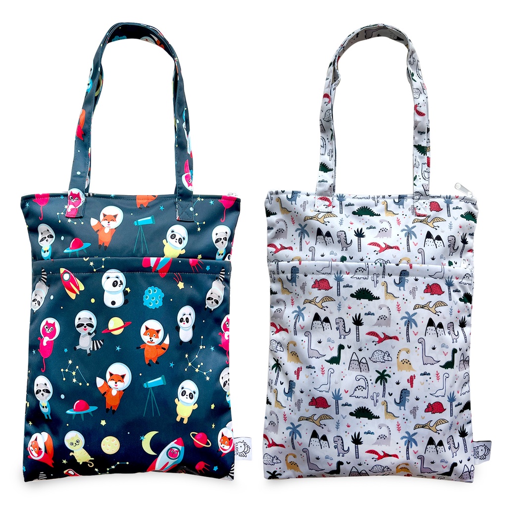 FLOCK THREE 2pcs Bundle Wet Dry Bag Waterproof Tote Reusable Baby Diapers Stroller Swimsuit Travel Small Large Size