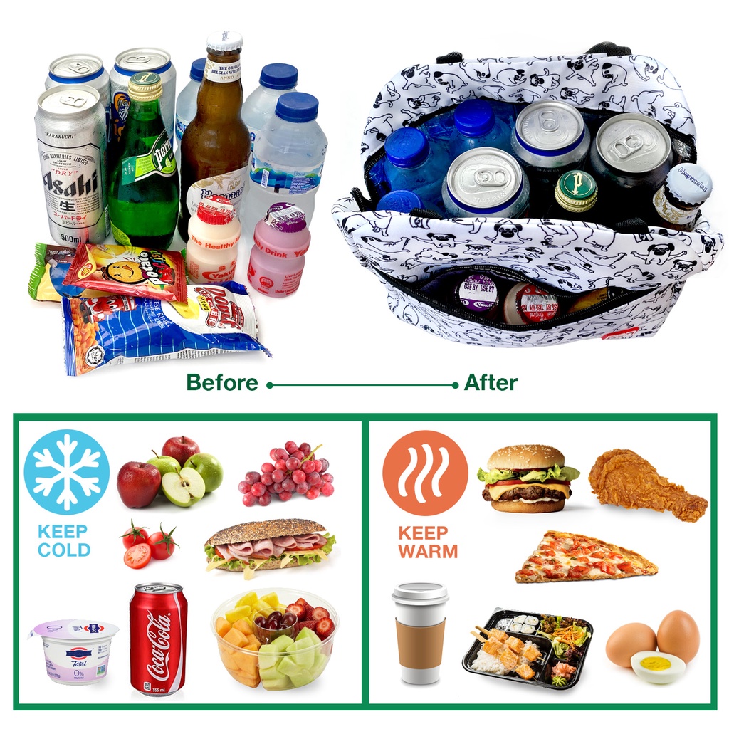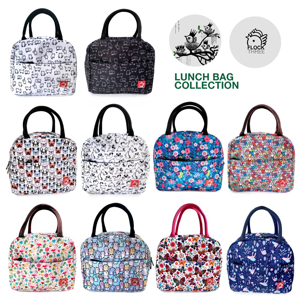 FLOCK THREE Waterproof Insulated Lunch Bag Food Drinks Container with Padded Pocket Double Zippers for Kids Men Woman