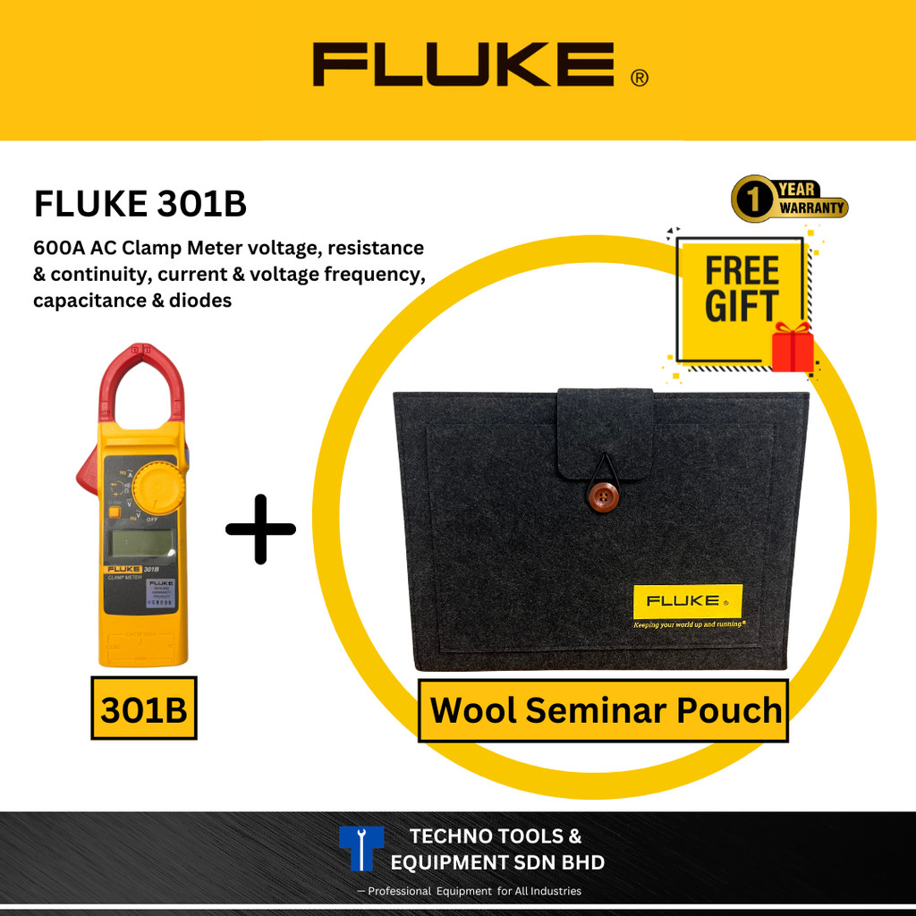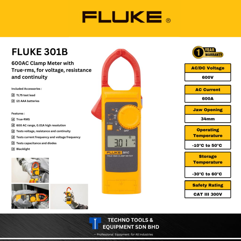 Fluke 301B Clamp Meter | AC 600A Current | AC/DC 600V , Resistance & Continuity, Capacitance & Diodes | 1 Year Warranty