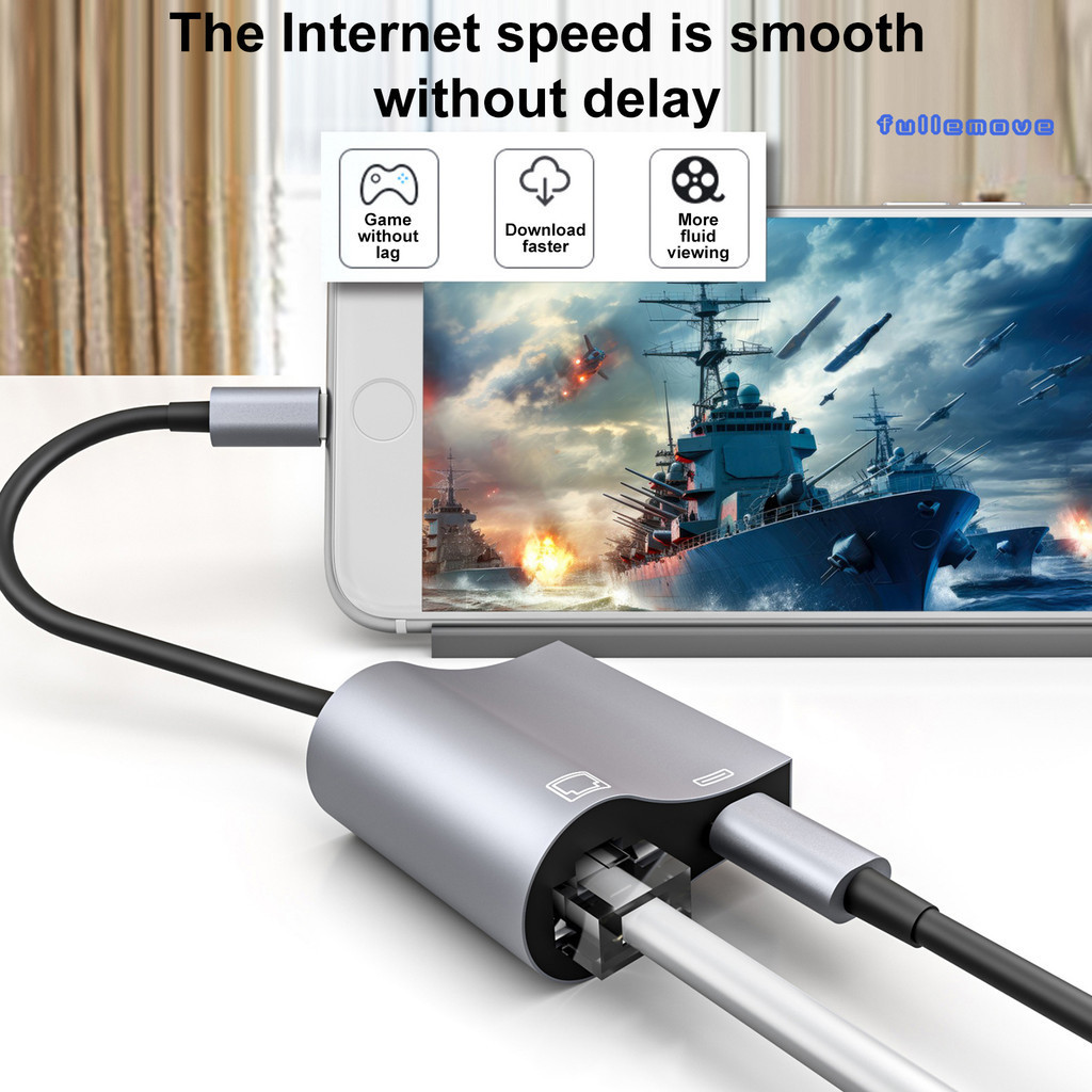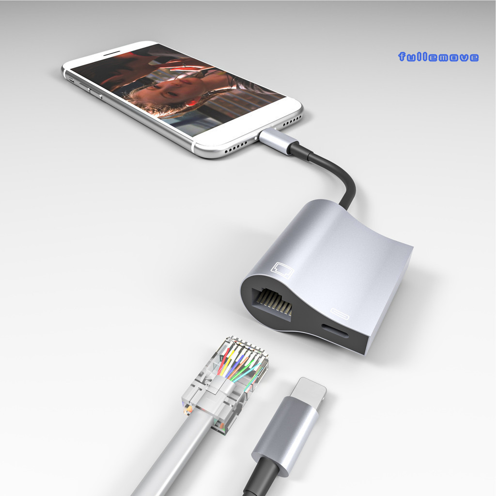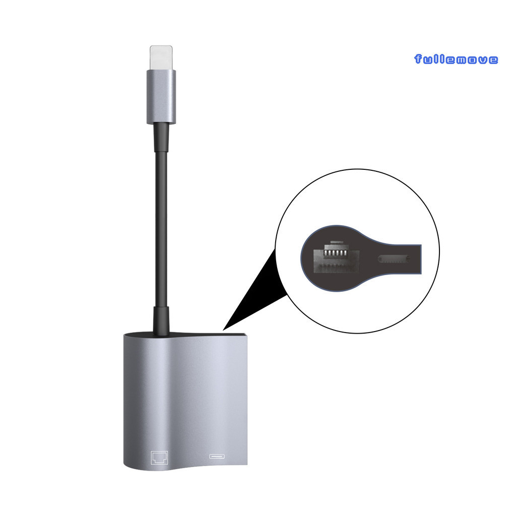 FM_ Lightning-Interface to RJ45 Ethernet Adapter 2 in 1 LAN Network Adapter Support 10/100Mbps Driver-free Gigabit Network Cable Converter for iPad High Speed Network Card Adapter