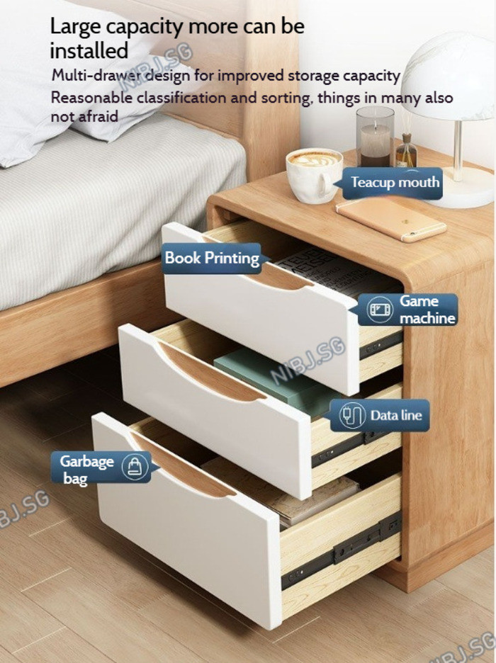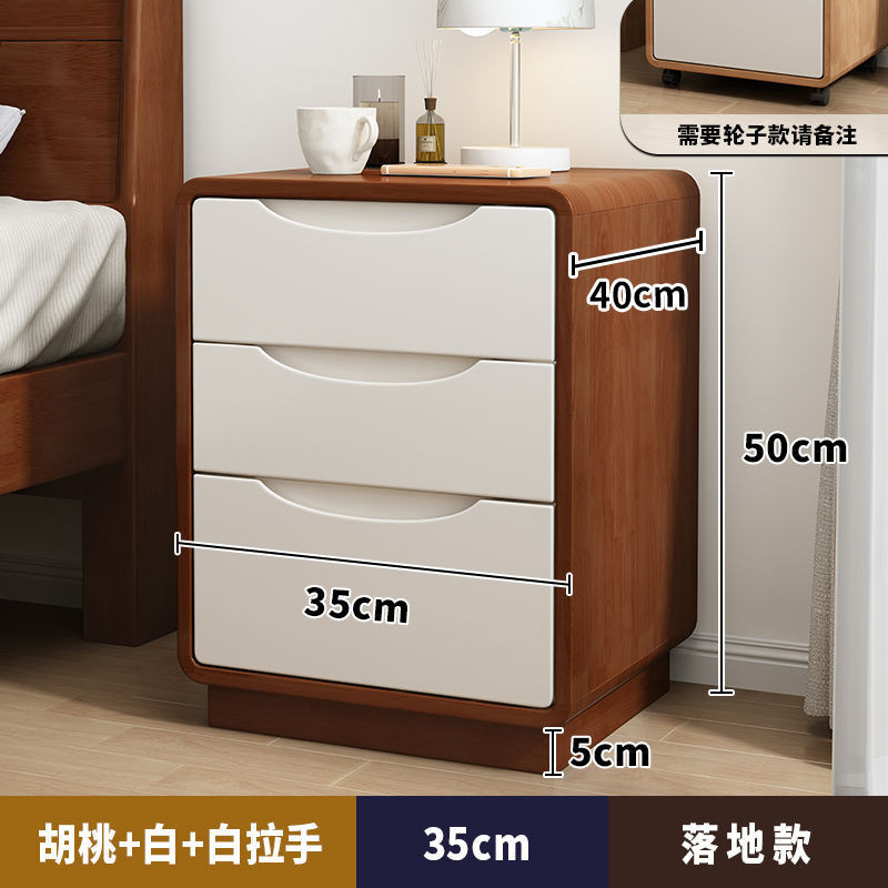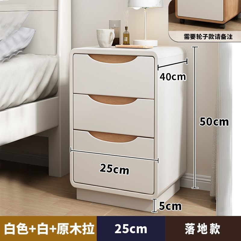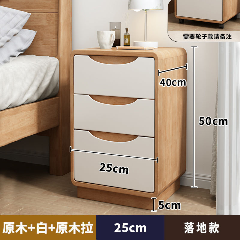 FNBJ 【No installation required】Solid Wood Bedside Cabinet Modern Simple Movable Whole Set Of Storage Storage Cabinet With Wheels Floor Cabinet