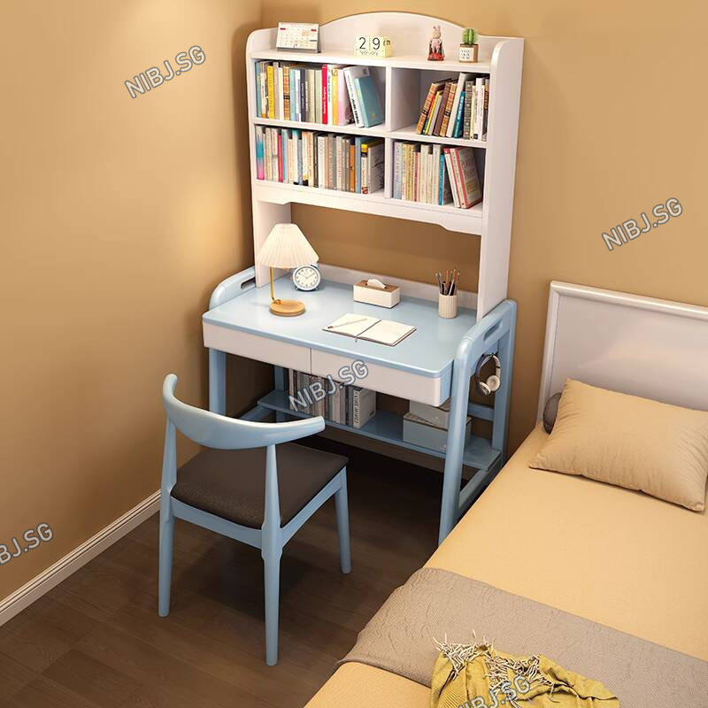 FNBJ Solid Wood Desk Bookshelf Integrated Table Simple Home Student Computer Desk Small Apartment Bedroom Lift Writing Desk