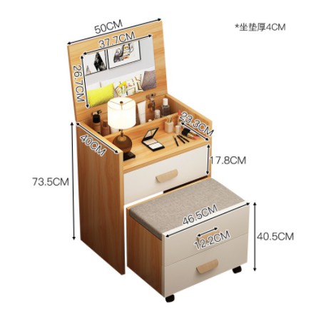 FOLD DOWN MIRROR DRESSING MAKEUP TABLE WITH CHAIR