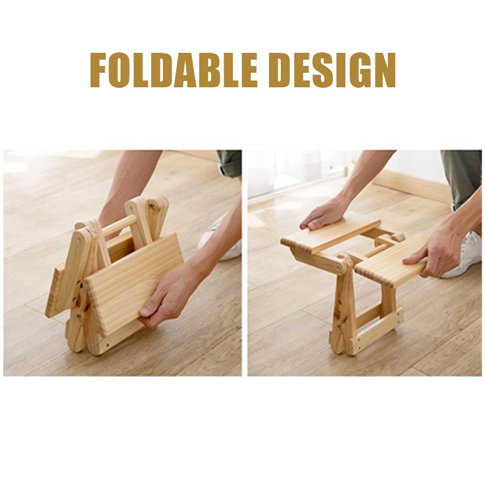 FOLDABLE MINI WOODEN STOOL CHAIR SOLID WOOD RECTANGLE CREATIVE DESIGN MULTIPURPOSE EXPANDABLE SPACE SAVING