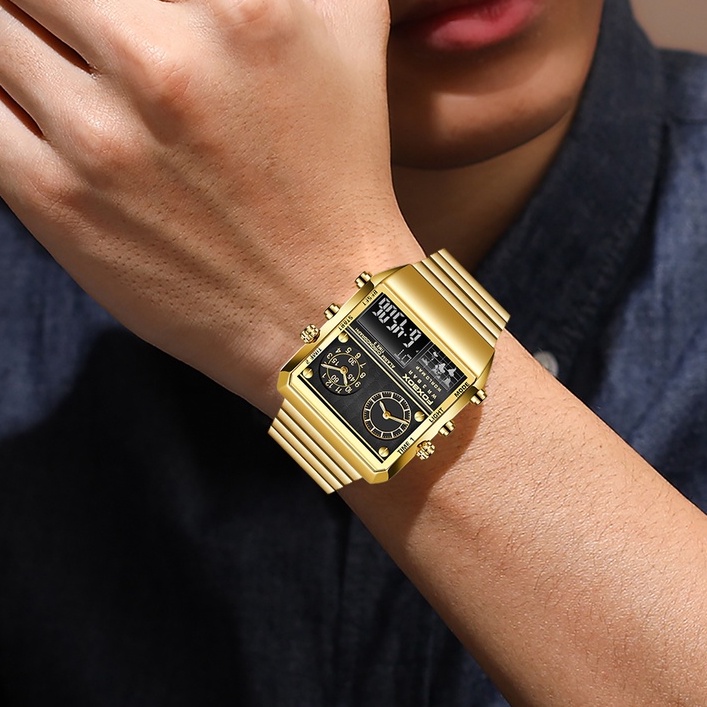 FOXBOX New Creative Square Watch Men Top Brand Luxury Digital Watch Fashion Dual Display Watches For Men