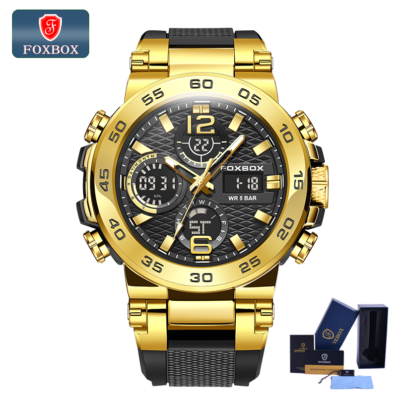 FOXBOX Watch original For Men LED Waterproof Sport Electronic Luminous Quartz Silicone Wristwatch Date Alarm LIGE Men Watches
