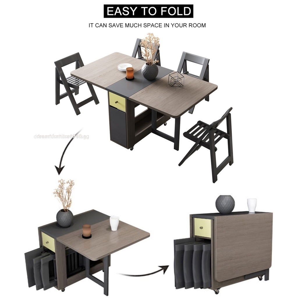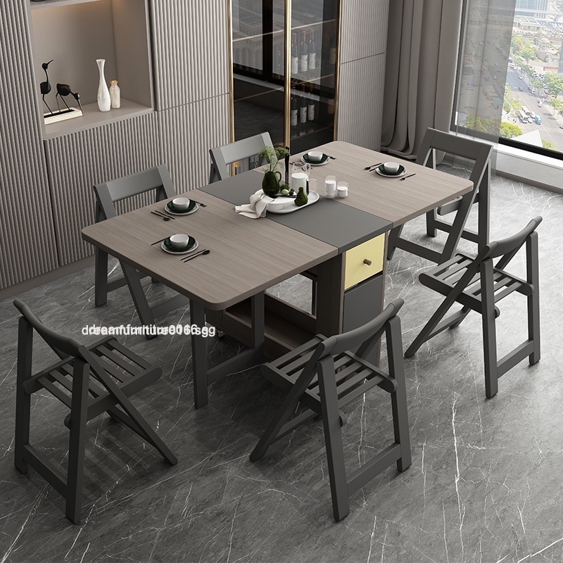 FREE Installation Retractable Dining Table Set Multifunctional Folding Dining Table Chair Combination Two Colors