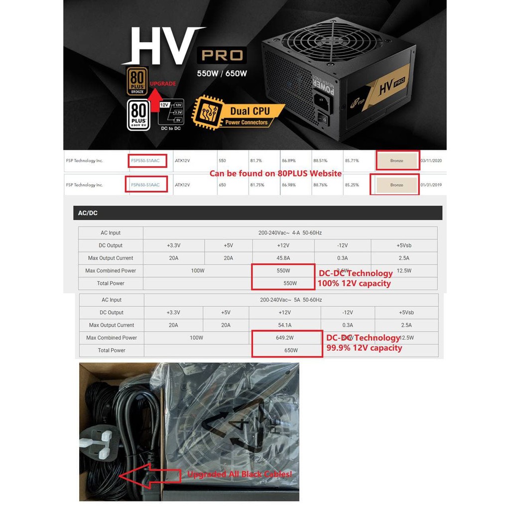 FSP HV PRO Bronze 550W 650W PSU Computer Customer PC Power Supply ATX