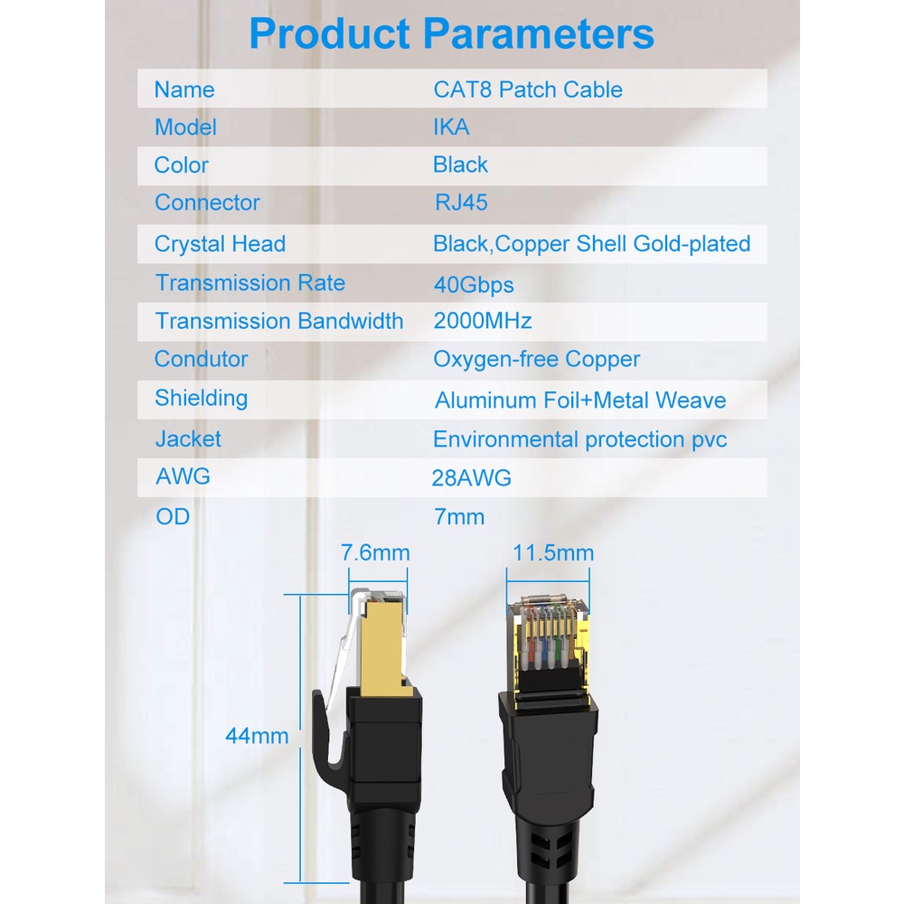 FSU 1m 2m 5m 8m CAT8 Ethernet Cable 40Gbps 2000MHz CAT 8 RJ45 Network Lan Patch Cord for PC Computer Modem Router Interne Laptops