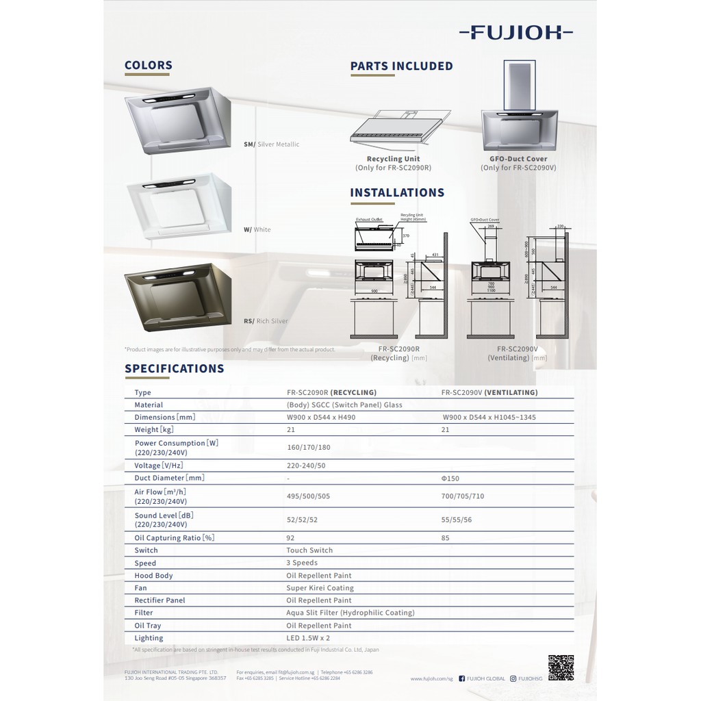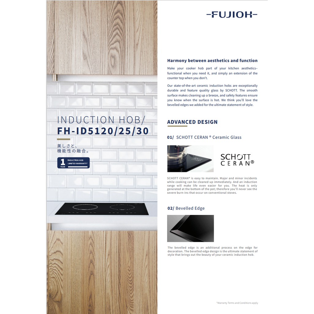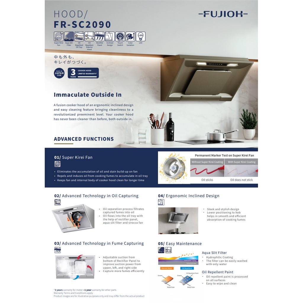 FUJIOH SC-2090 900MM INCLINED DESIGN COOKER HOOD + FH-ID5230 INDUCTION HOB BUNDLE DEAL
