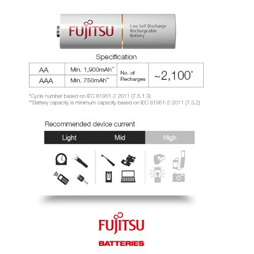 FUJITSU Standard AA 2000mAh (Min. 1900) Rechargeable Battery - Made in Japan