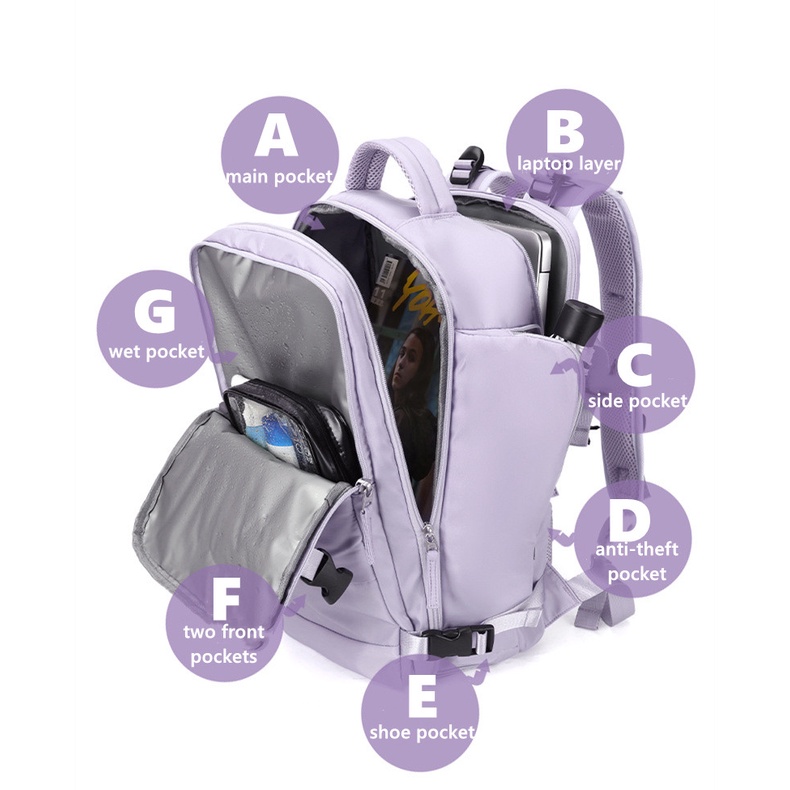 FULL DESIGN 40L Female 16" Laptop Backpack Large Capacity Waterproof Travel Backpack with Shoe Pocket School Backpack Sports Bag