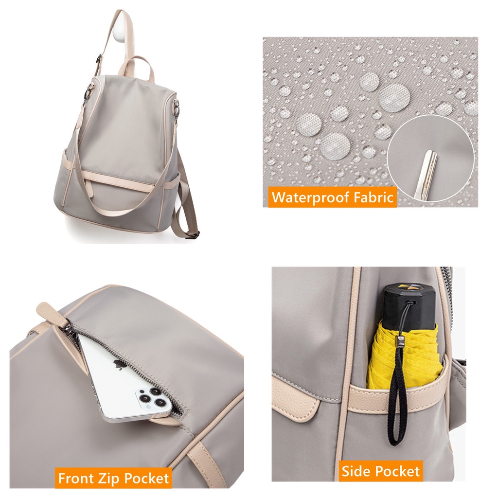 FULL DESIGN Waterproof Anti-theft Backpack with Sling Strap Pink Black Apricot