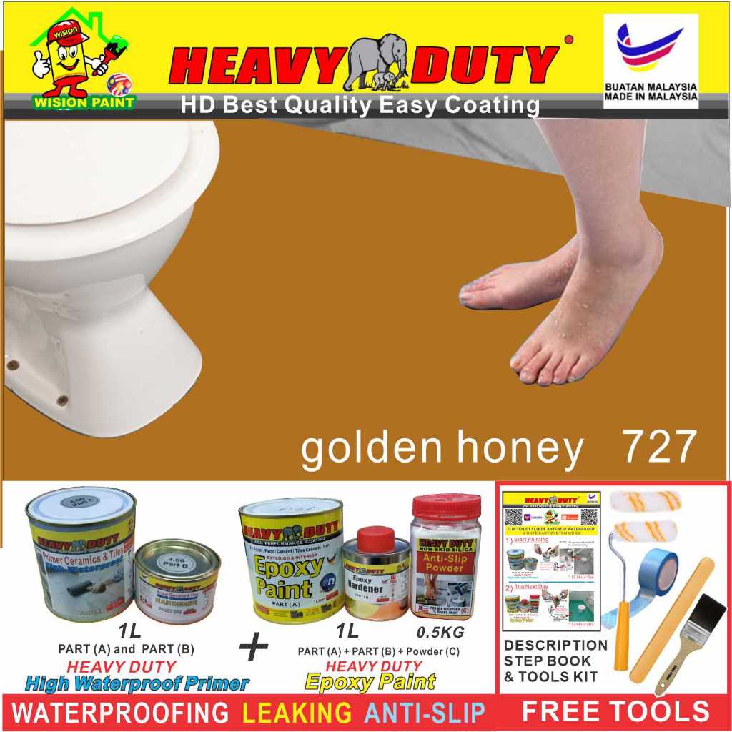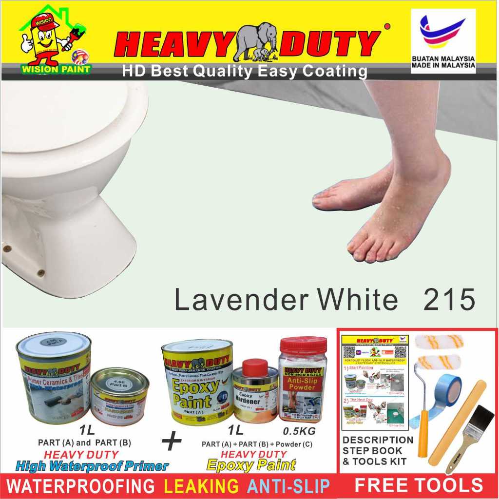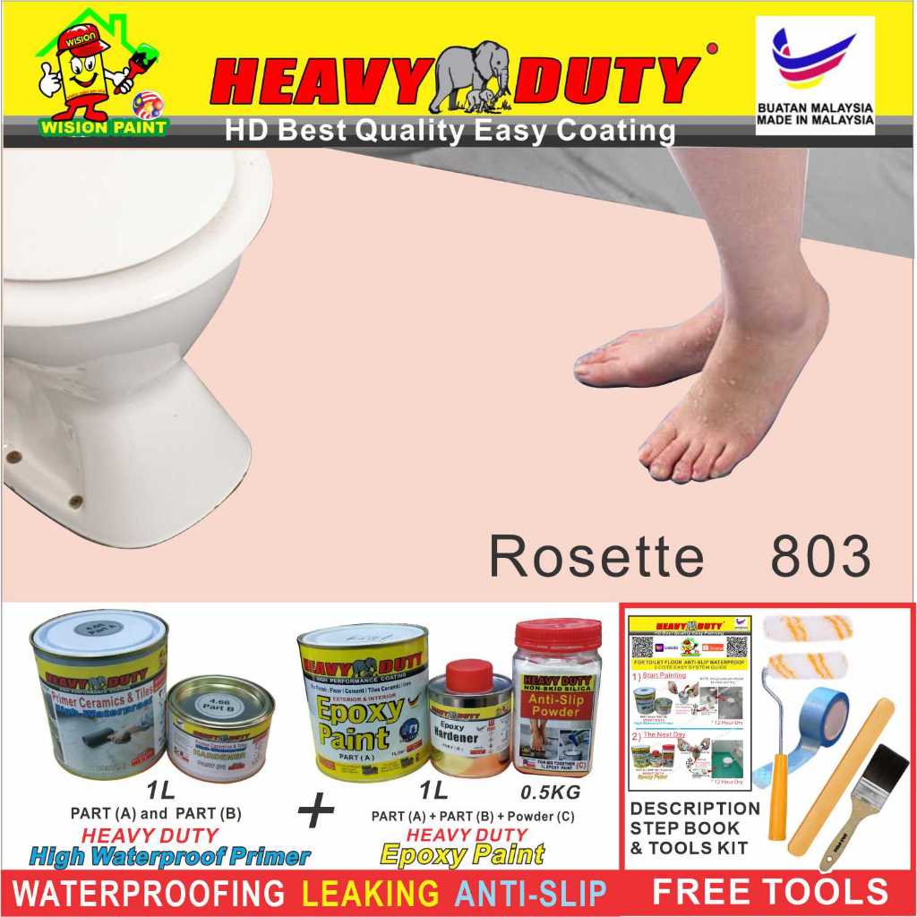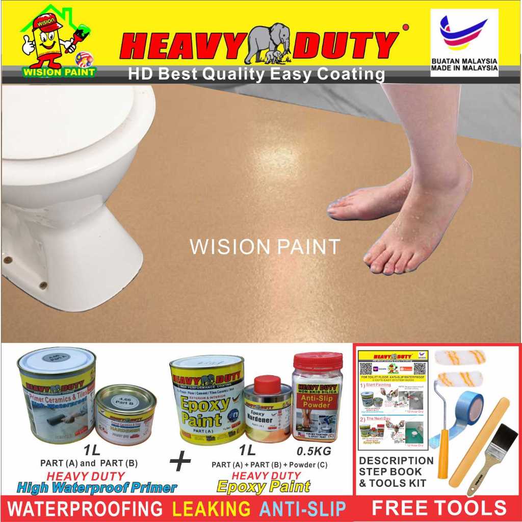 FULL SET EPOXY HEAVY DUTY Floor Coating (Free Paint Tool Set) 1L Tile Primer + 1L Epoxy Colour + 0.5kg Non-skid Silica