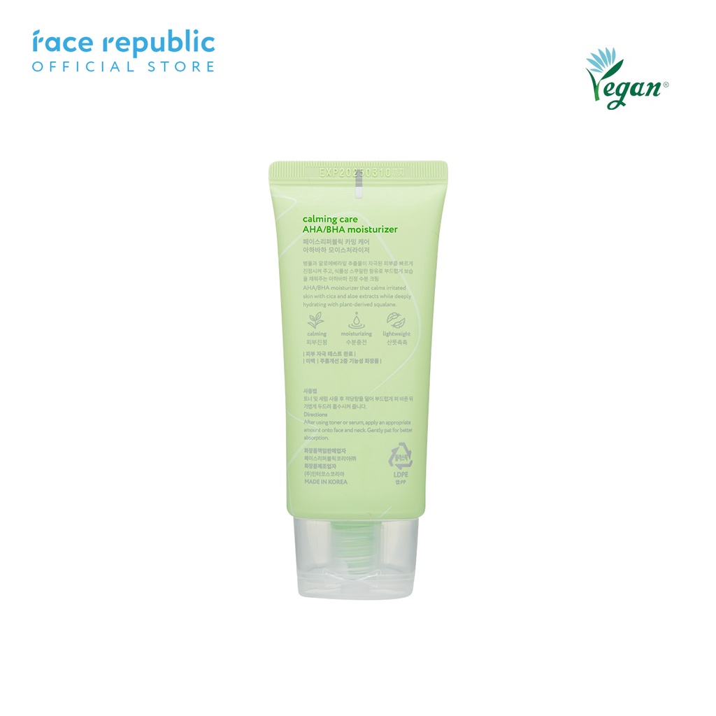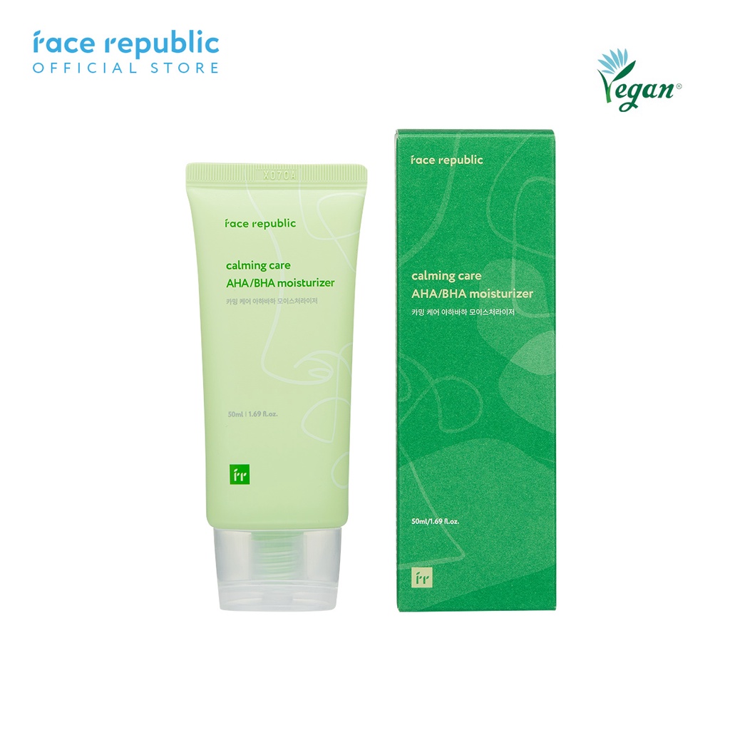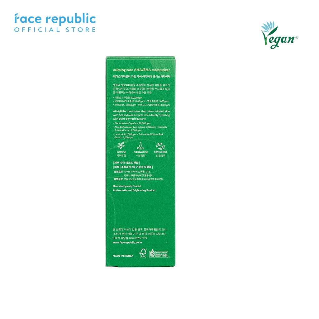 Face Republic Calming AHA/BHA Moisturizer, Non-comedogenic 50mL [Oily,Acne / CICA, Squalane] Vegan