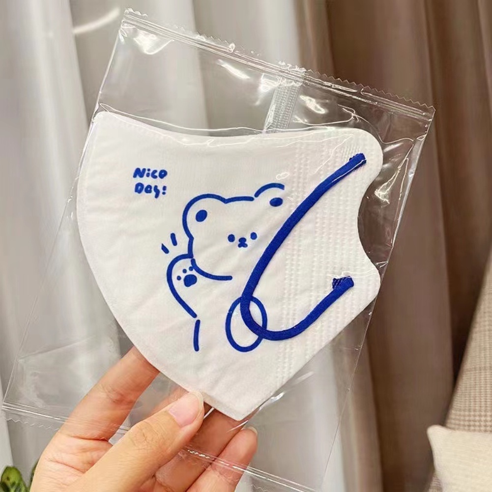 Facial mask kn95-3d facial mask Klein adult cartoon facial mask kf94 3D facial mask 3-layer filtered Korean shaped facial mask adult facial mask pack 10 pieces.
