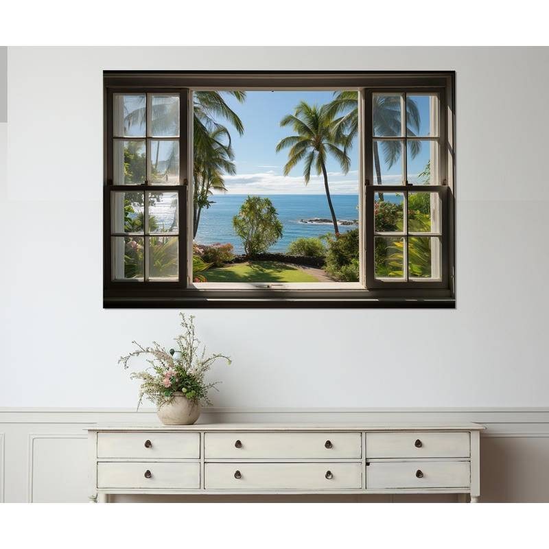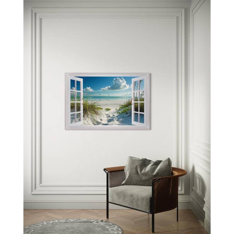 Fake Window View Beach Scenery Wall Sticker Mural Art Decal for Home Living Room Bedroom Decor Beach,Frameless poster