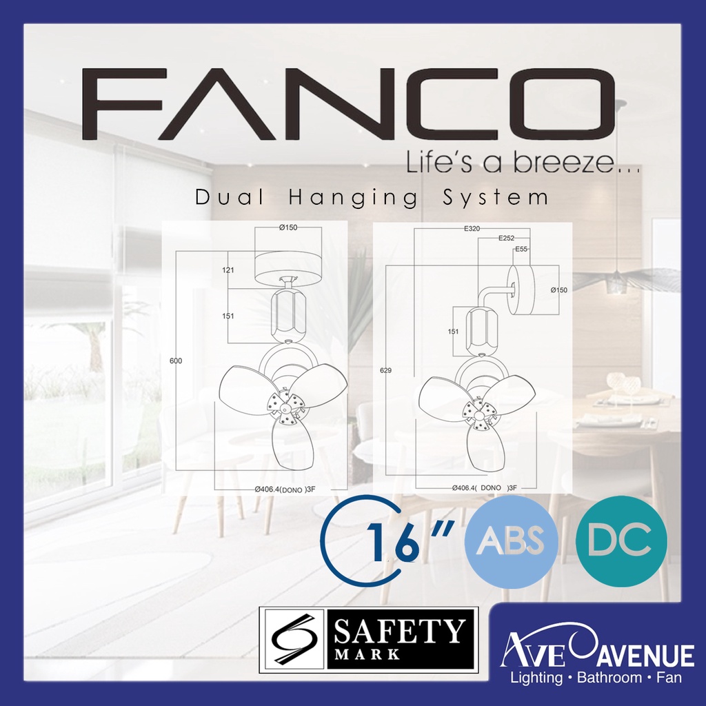 Fanco DONO 16 Inch DC Motor Corner Fan with Ceiling and Wall Mount Bracket and Remote Control