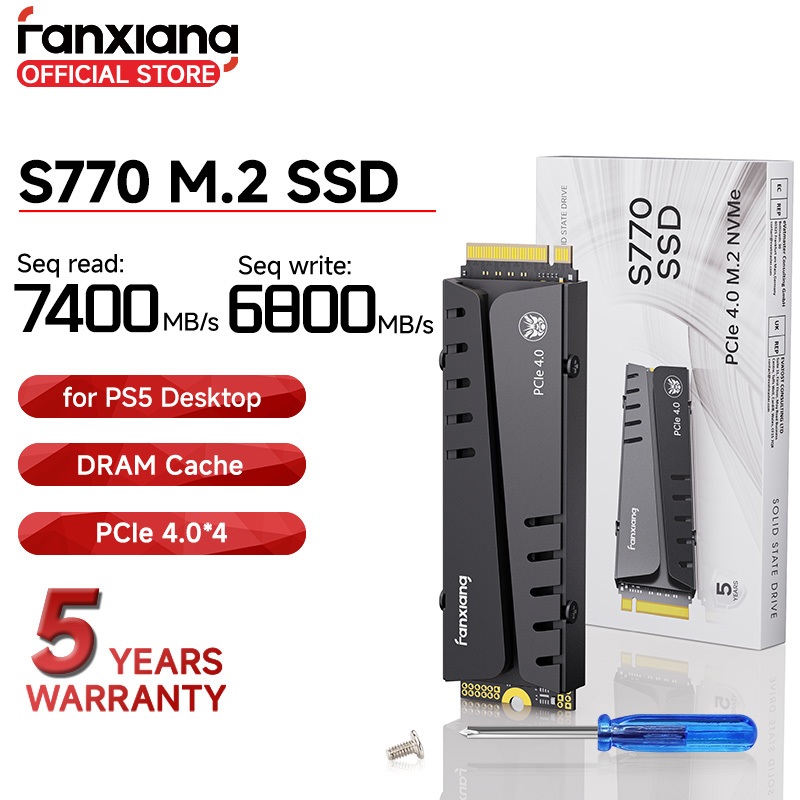 Fanxiang S770 SSD M.2 NVME PCIe 4.0 1TB 2TB 7400MB/s Dram Cache TLC With Heatsink For PC Desktop PS5