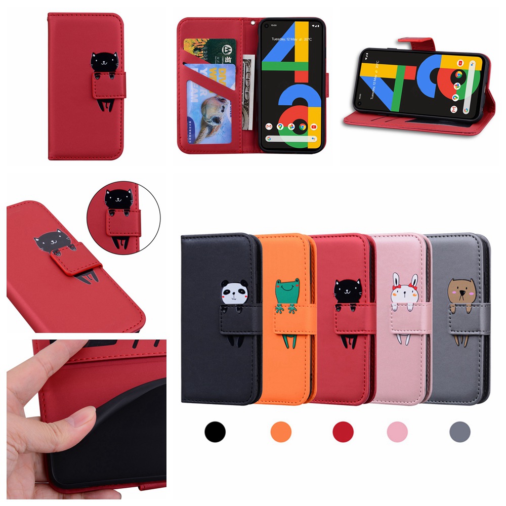 Fashion Cartoon Animals Flip Case for Google Pixel 4A PU Leather Soft TPU Casing Pixel4A 4G Magnetic Buckle Wallet Cover Card Holders Stand