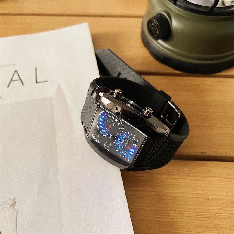 Fashion Men Watch LED Electronic Watch Aviation Pilot Speedometer Sports Car Meter Dial Digital Wrist Watch
