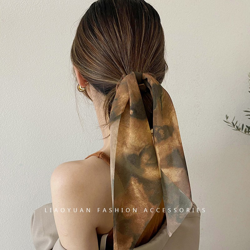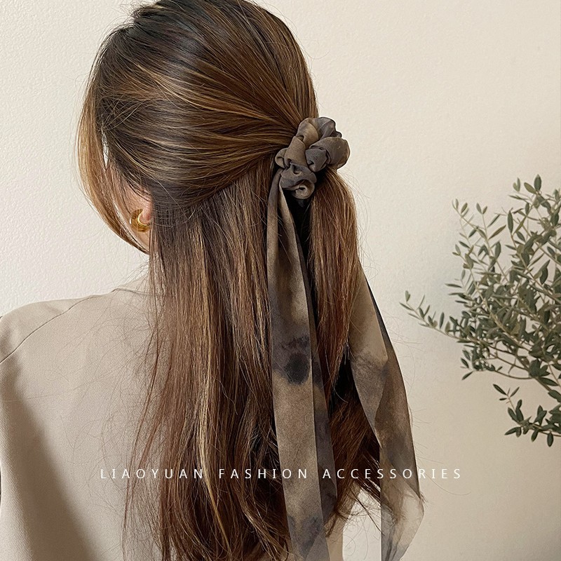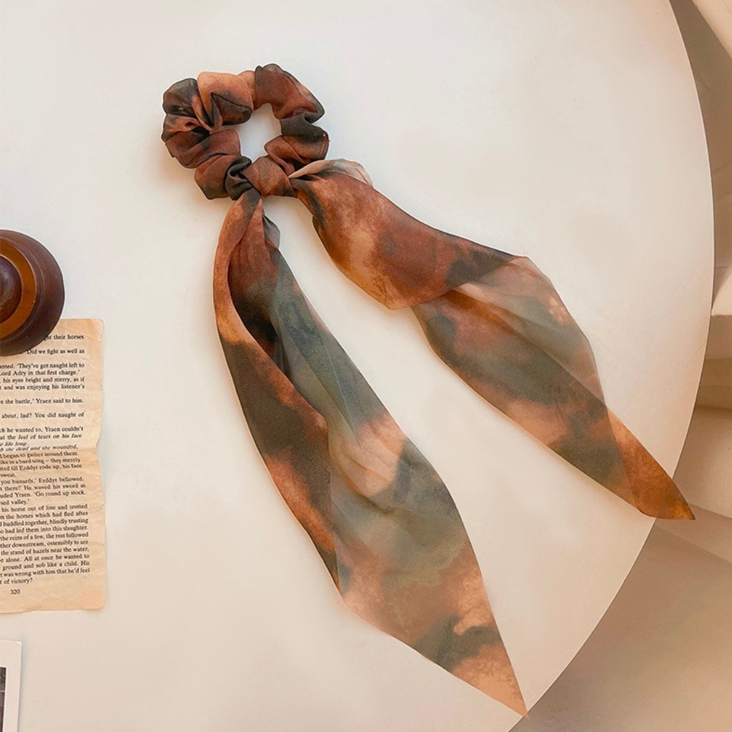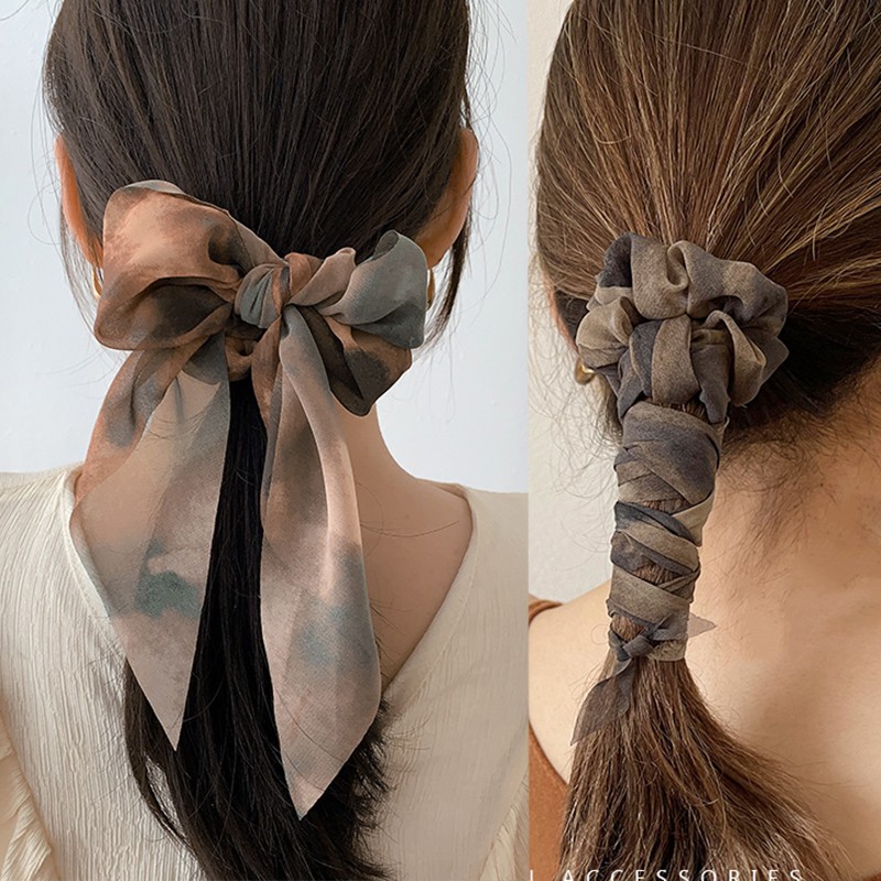 Fashion Ink Painting Scrunchies Elastic Hair Band Long Ribbon Rubber Band Girl Bow Hair Tie