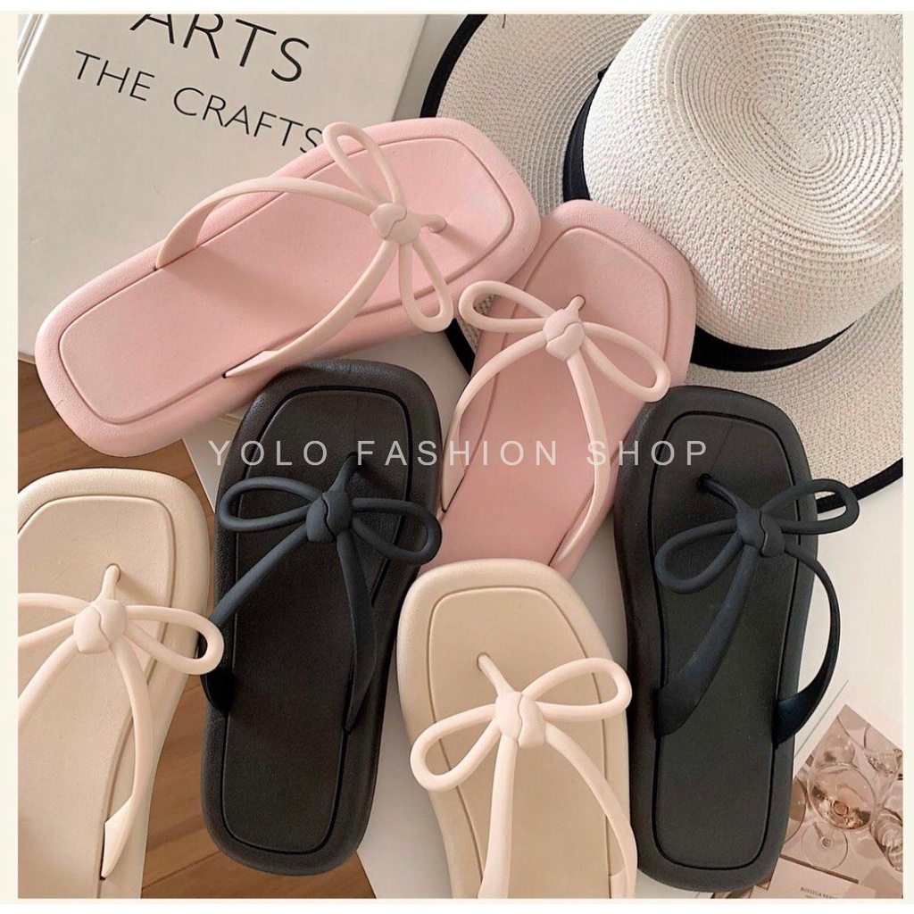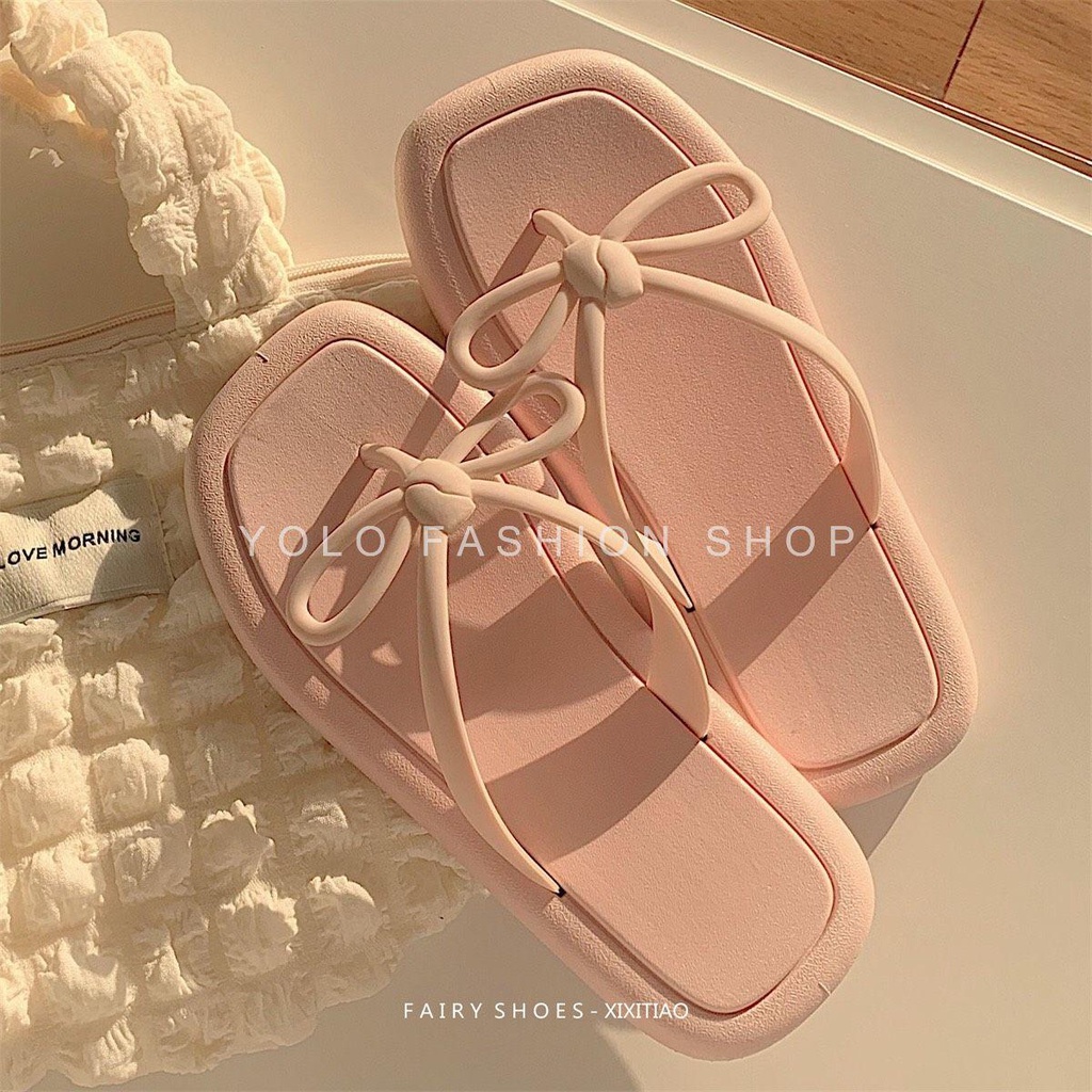 Fashion women's sandals, beach flip-flops with cute bow ties, super soft and comfortable - DK1