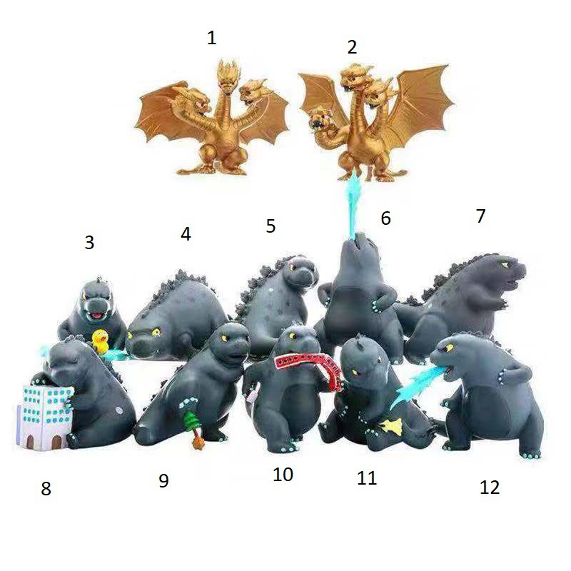Fat Godzilla Toy Model Set of 12 Cute Fat Godzilla Chibi Models 10cm High - Imported Goods