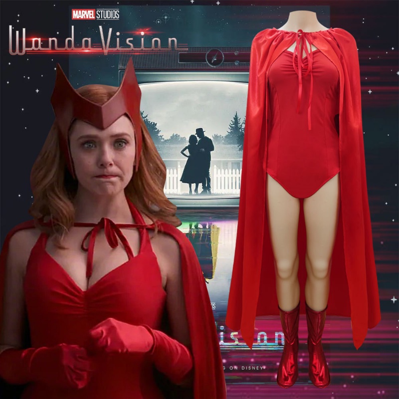 Female Wanda Maximoff Cosplay Costume Scarlet Witch Headwear Cloak and Pants Full Set Outfit