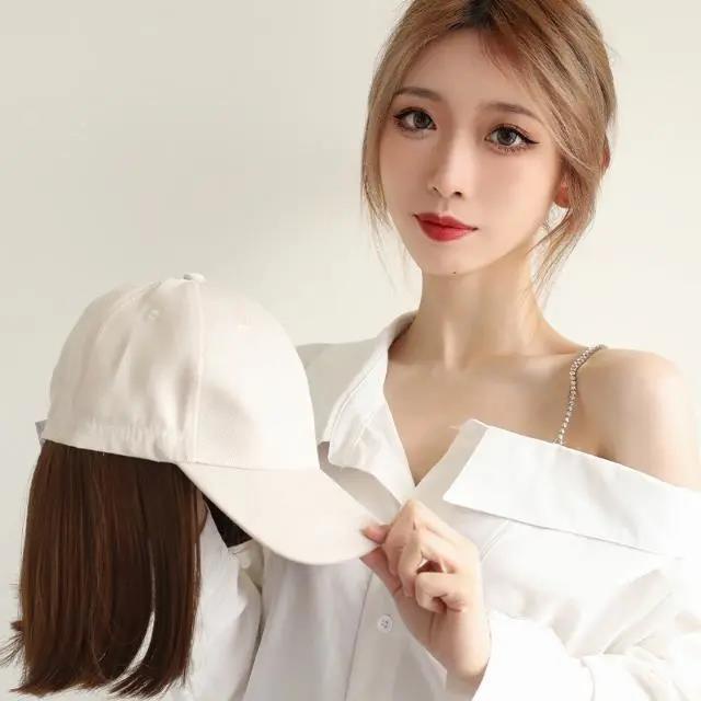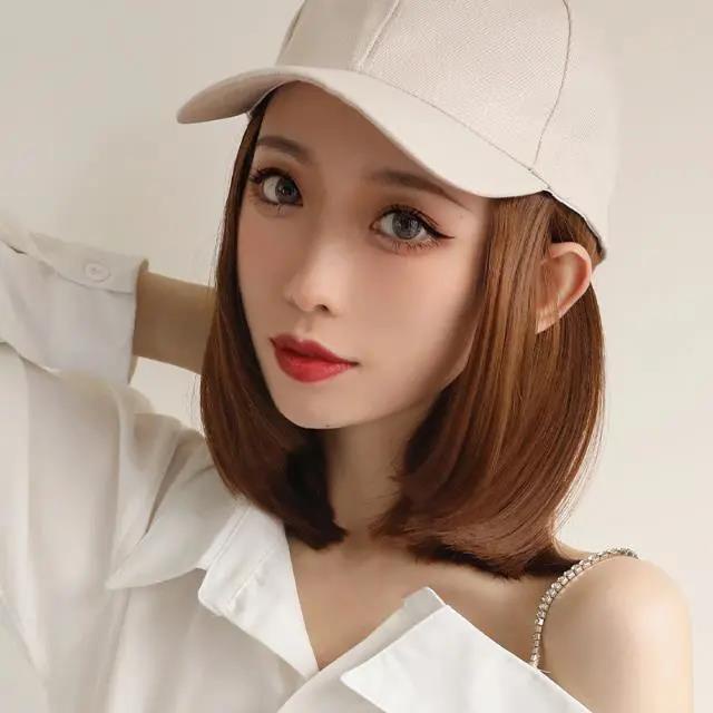Female Wig Cap,Bucket Hat with Short Hair Wigs Bob Hair Synthetic Hat for Women,Wig Female Hat One Spring Summer Thin Bobo Head Trendy Short Hair Sunshade Sunscreen Latest Style Hooded
