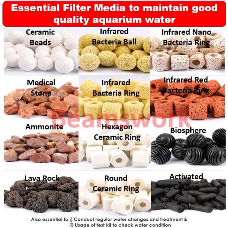 Fish Tank Filter Media. for fish aquarium. 12 types of media. Bacteria Ring & Bio Sphere. Charcoal.