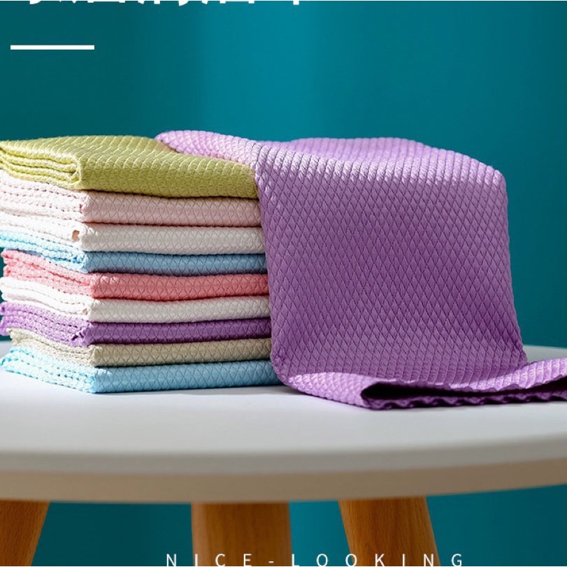 Fish scale rag wipe glass without watermark absorbent cleaning cloth housework kitchen non-stick oil cleaning cloth dishwashing cloth 25*25cm
