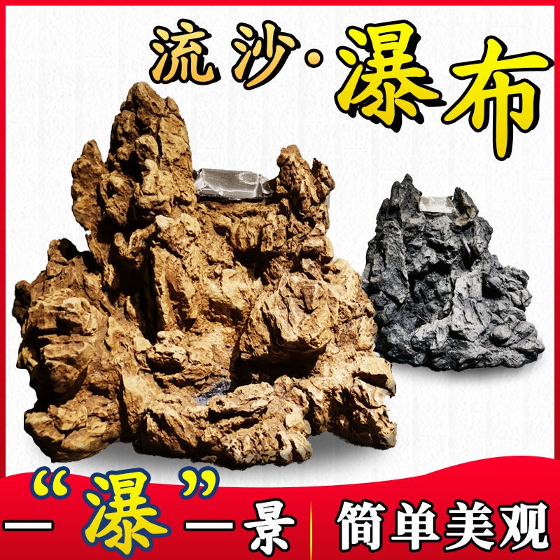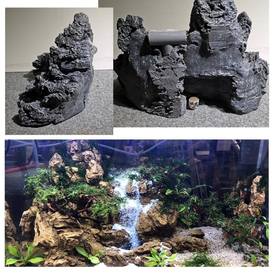 Fish tank rockery Fish tank Water Glitter Waterfall Landscaping Finished Product Package Qinglong Turquoise Skeleton rockery No Noise Handmade