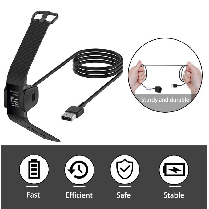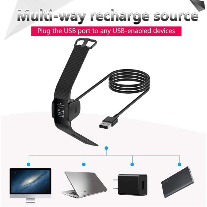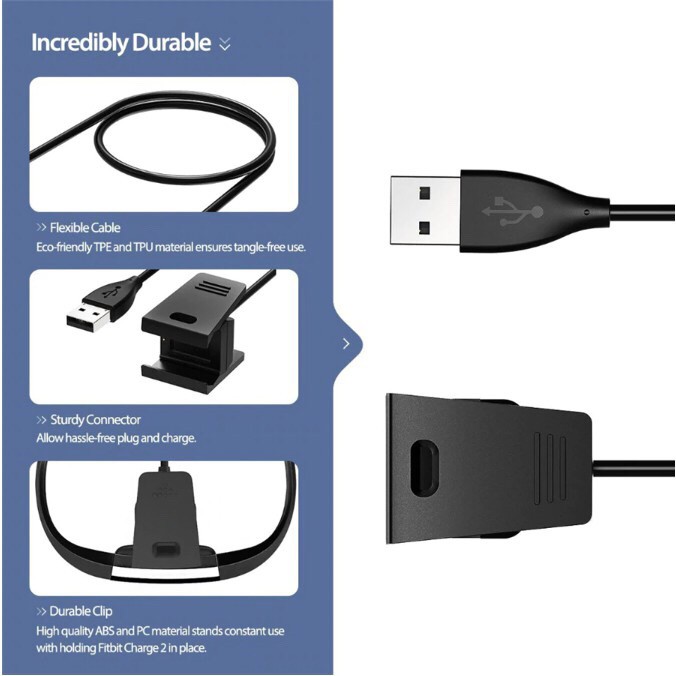 Fitbit Charge 6 / 5 / 4 / 3 / 2 / Luxe Charger USB Cable Replacement USB Charging Clip Dock Adapter