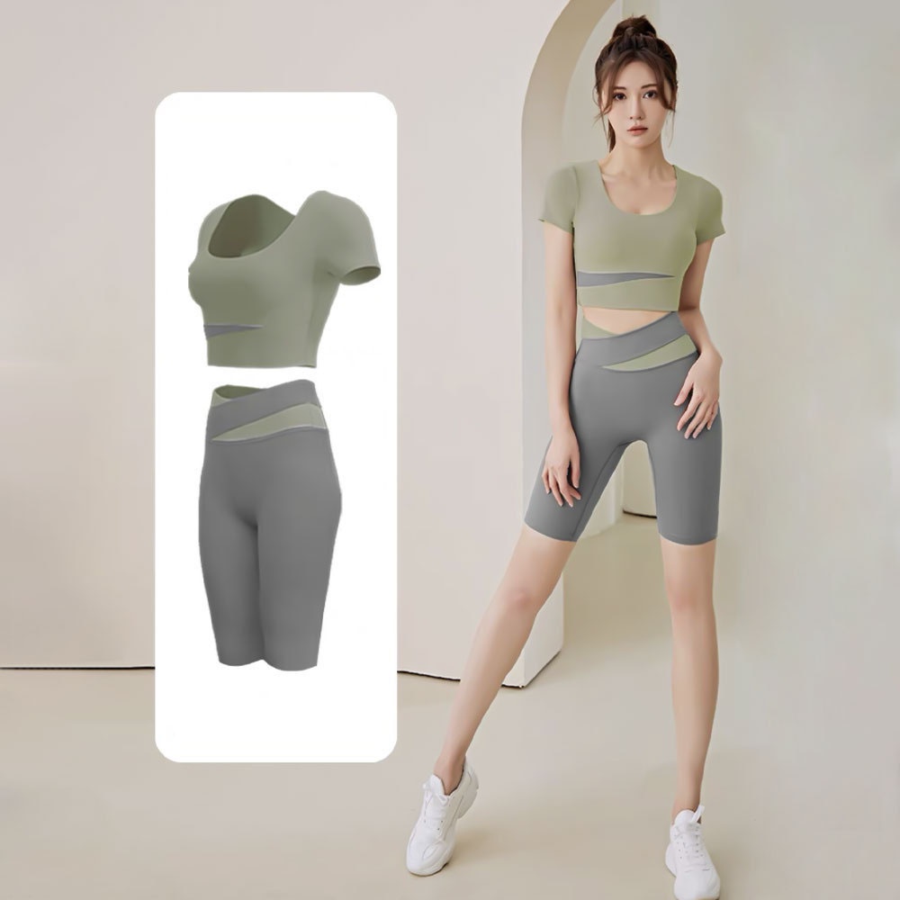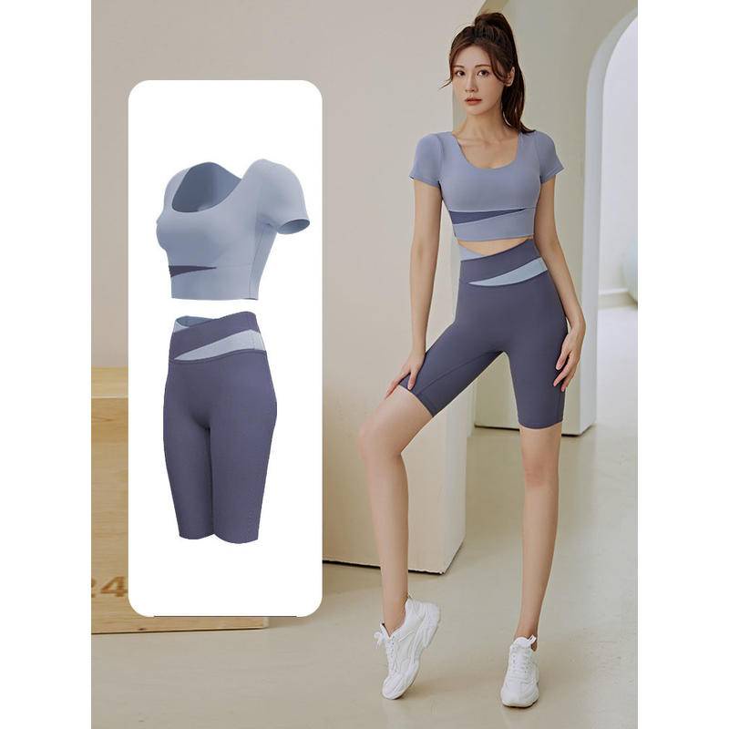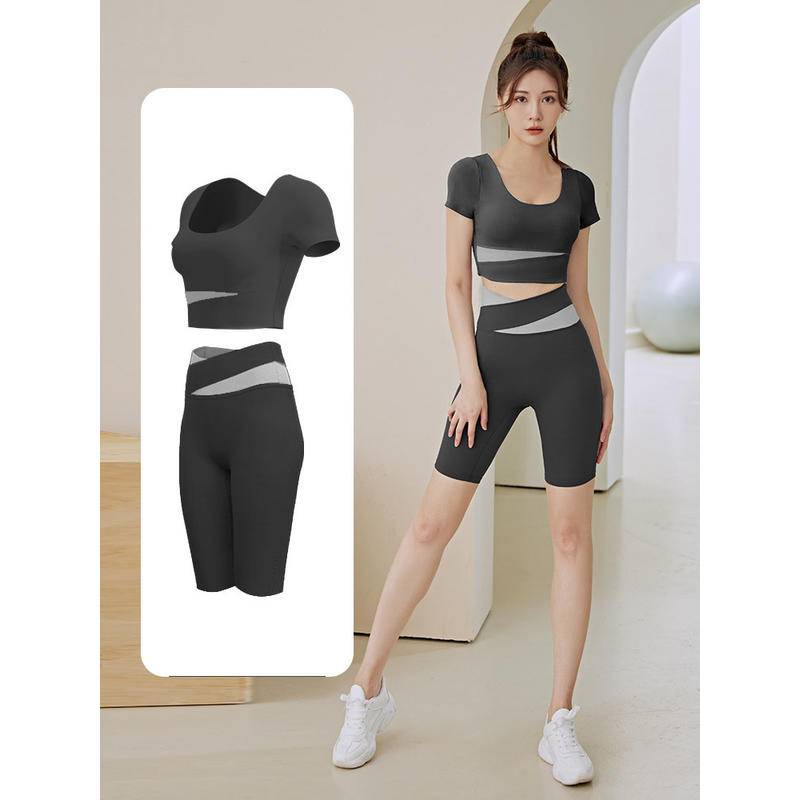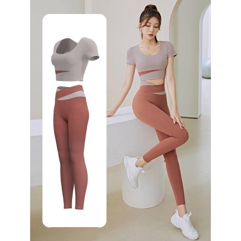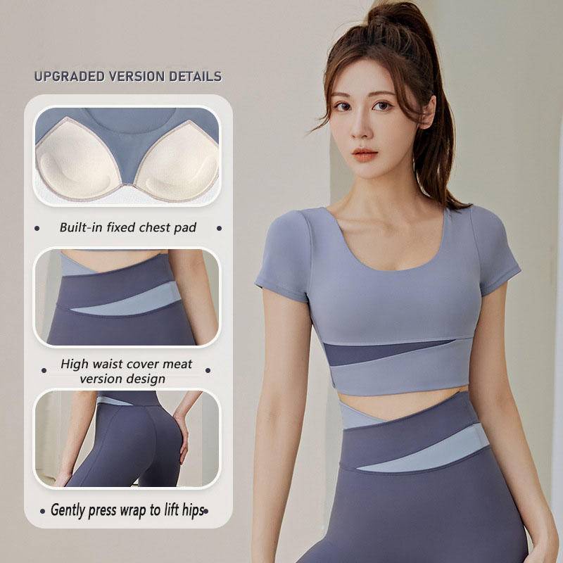 Fitness Padded Sport Top Tight Fitting Sports Yoga Pants Leggings gym Workout Clothes Short Sleeve Sports T-shirt for Women Quick Dry Sport Wear Set