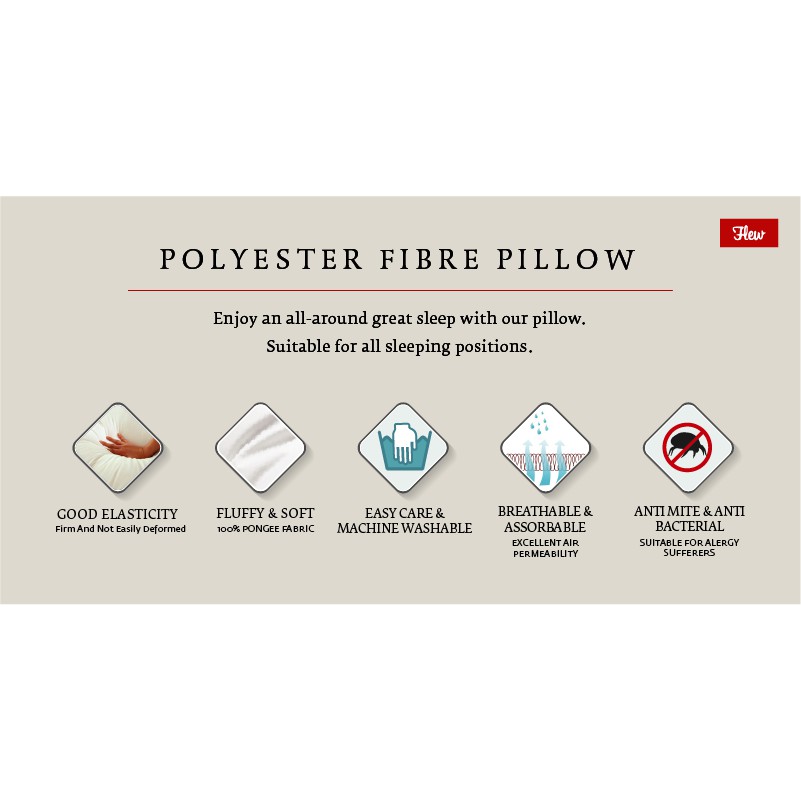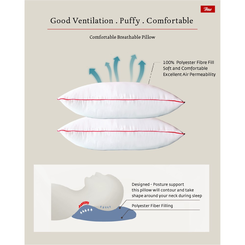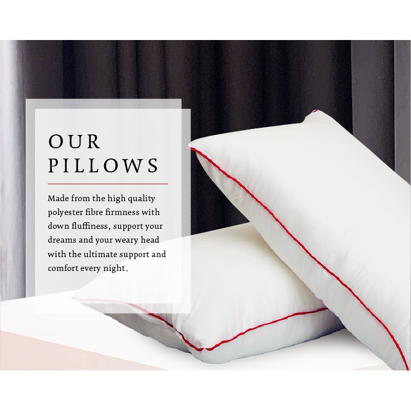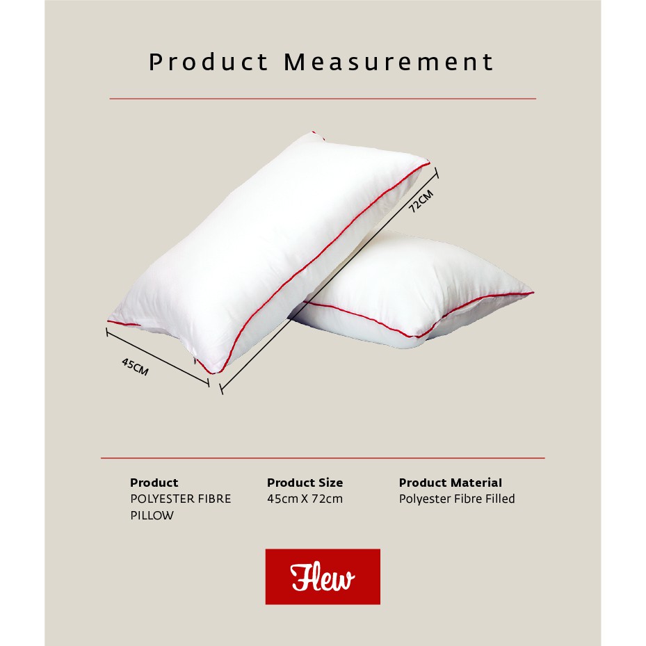 Flew Hotel Premium Pillow 100% Polyester Fibre Pillow with Piping - 72cm x 45cm