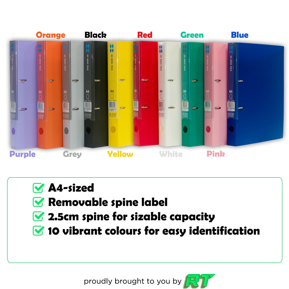 Flexi A4 2 D-Ring File with Side Pocket, Large Capacity and Vibrant Colours