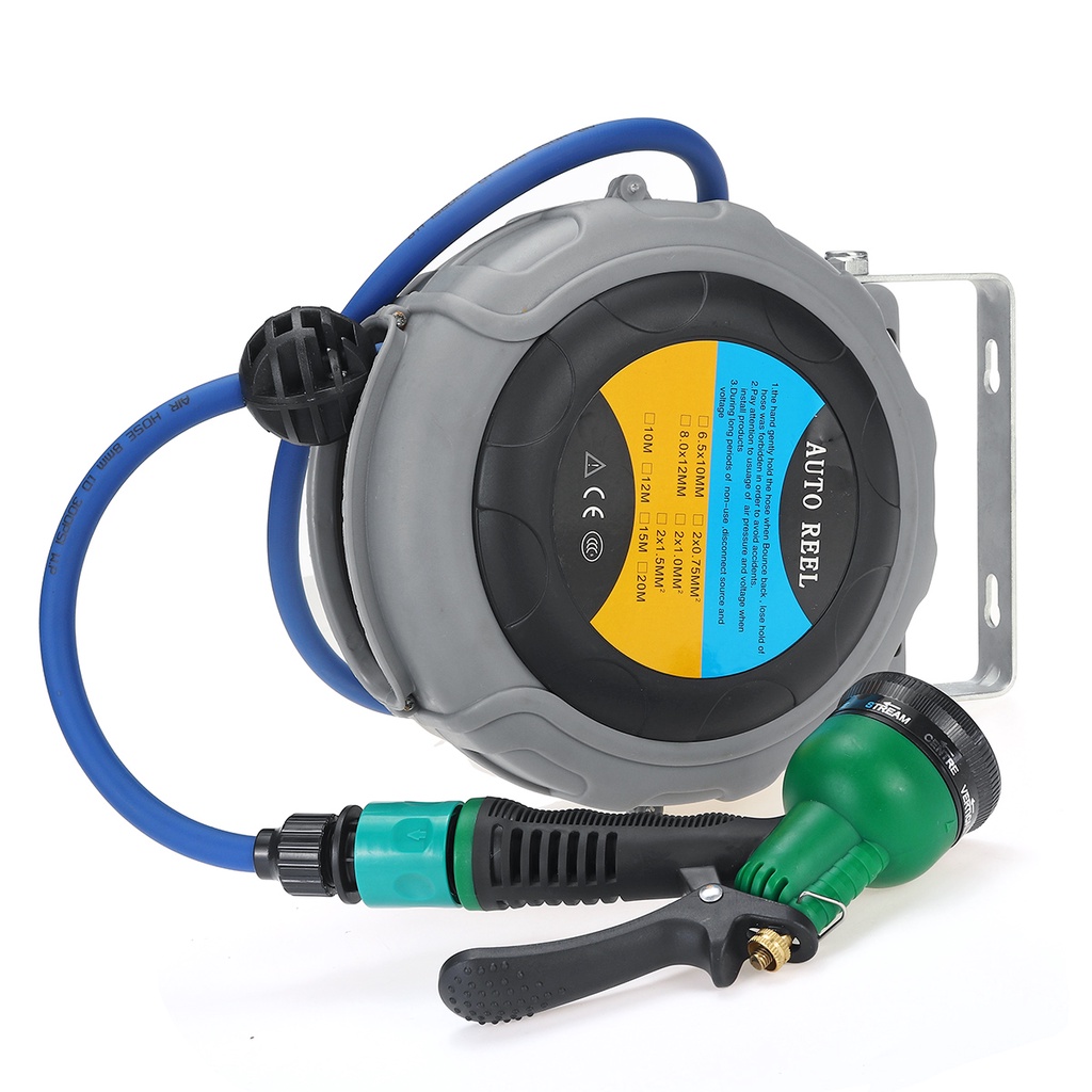 Flexible Hose Reel Automatic Reel Retractable Pipe TPU Clamping Tube Irrigation Sprayer Garden Hose Water Spray Garage Tool Car Cleaning gray 8x12x6M