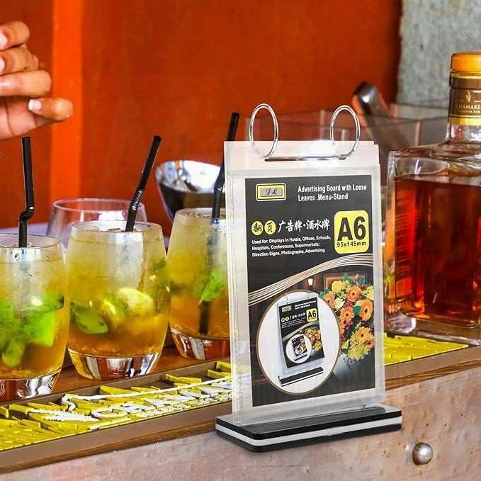 Flip Menu Display Stand Table Acrylic Poster Holder A4 A5 A6 6 Sleeves Office Restaurant File Folder