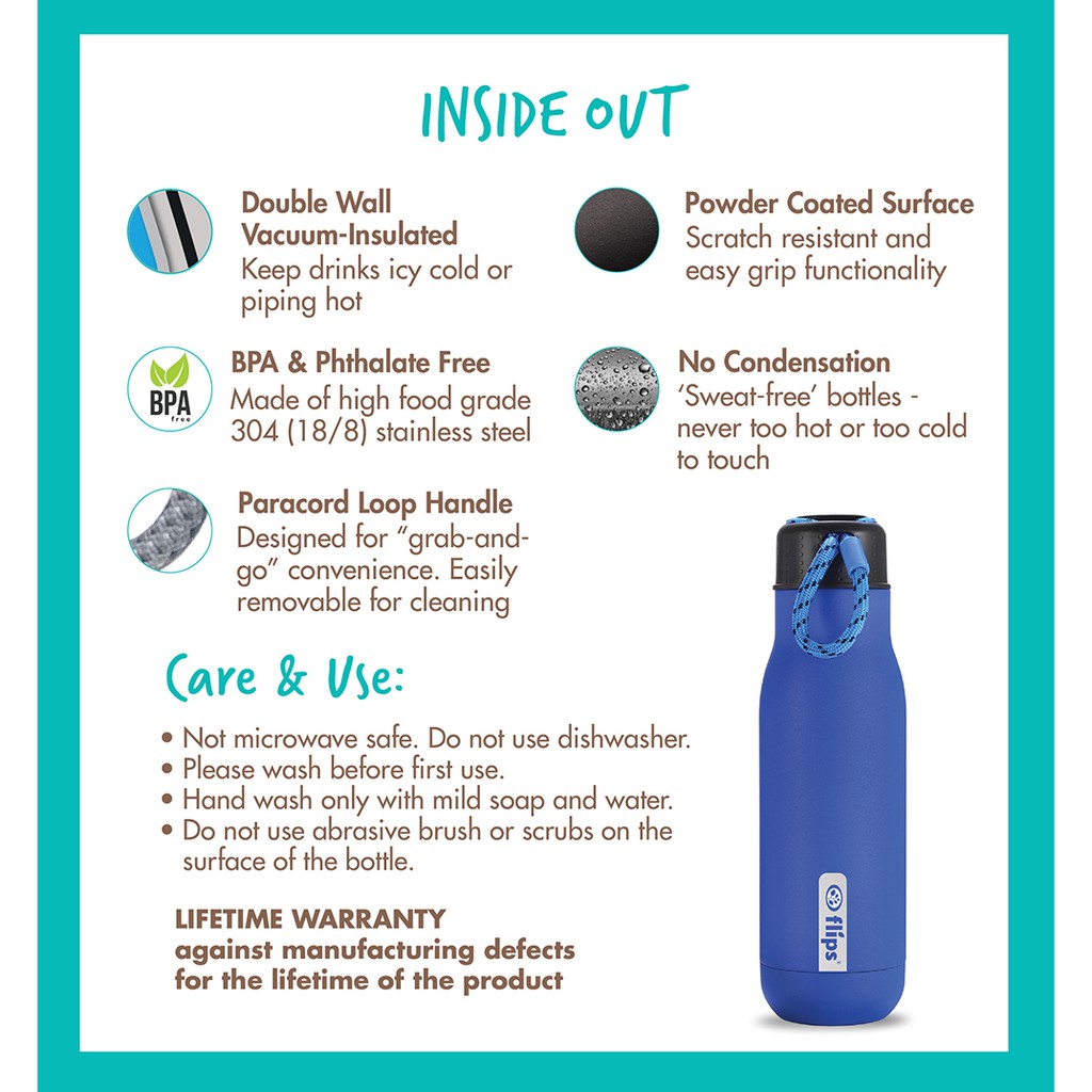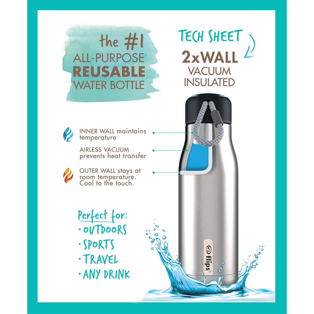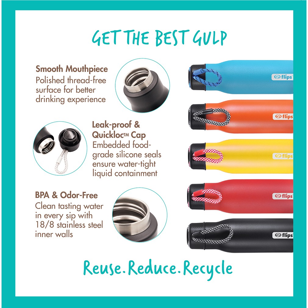 Flips Ezygripz Vacuum Insulated Double Walled 304 Stainless Steel Bottle in 4 colours