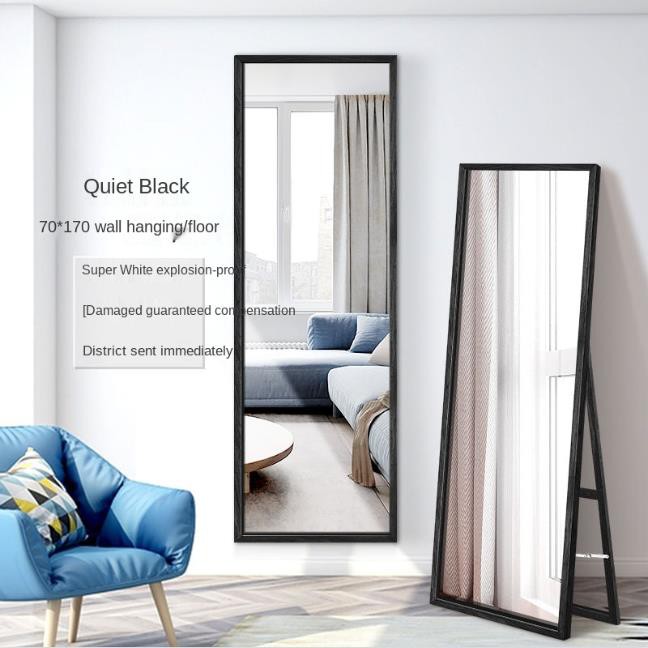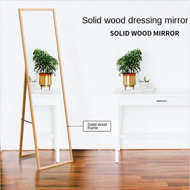 Floor Mirror Full Body Mirror Standing Mirror Wall-Mounted Household Wood Color Solid Wood Full-Length Mirror