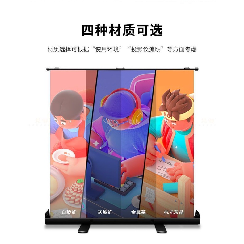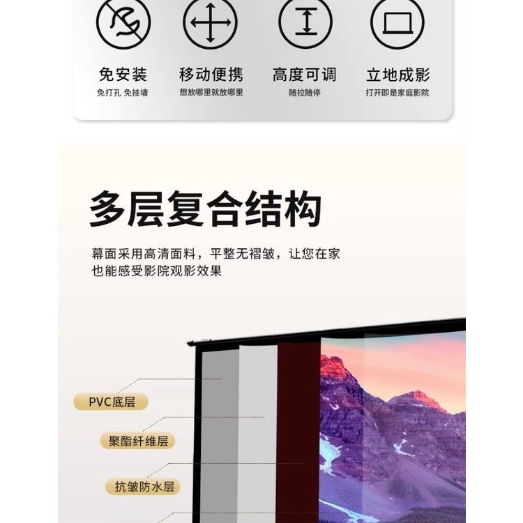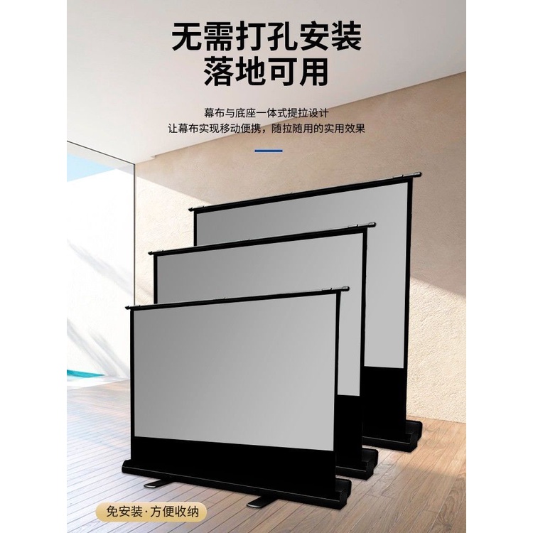 Floor-Pull Projection Screen Straight Edge Punch-Free Projector for Home Use Screen Floor-Mounted Projection Mobile Screen