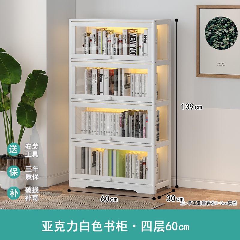 Floor Transparent Acrylic Bookcase White Baffle Simple Bookshelf Storage Shelf Storage Box