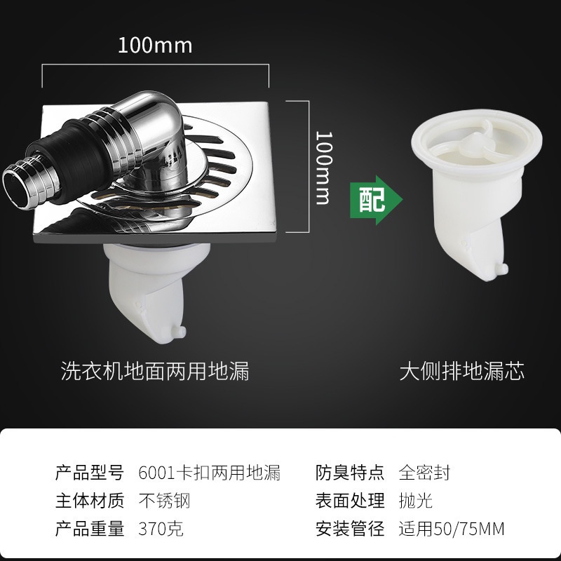 Floor drain washing machine floor drain cover 304 stainless steel bathroom floor drain floor trap washing machine drain 10*10cm floor trap cover drain cover WJ210