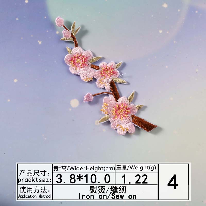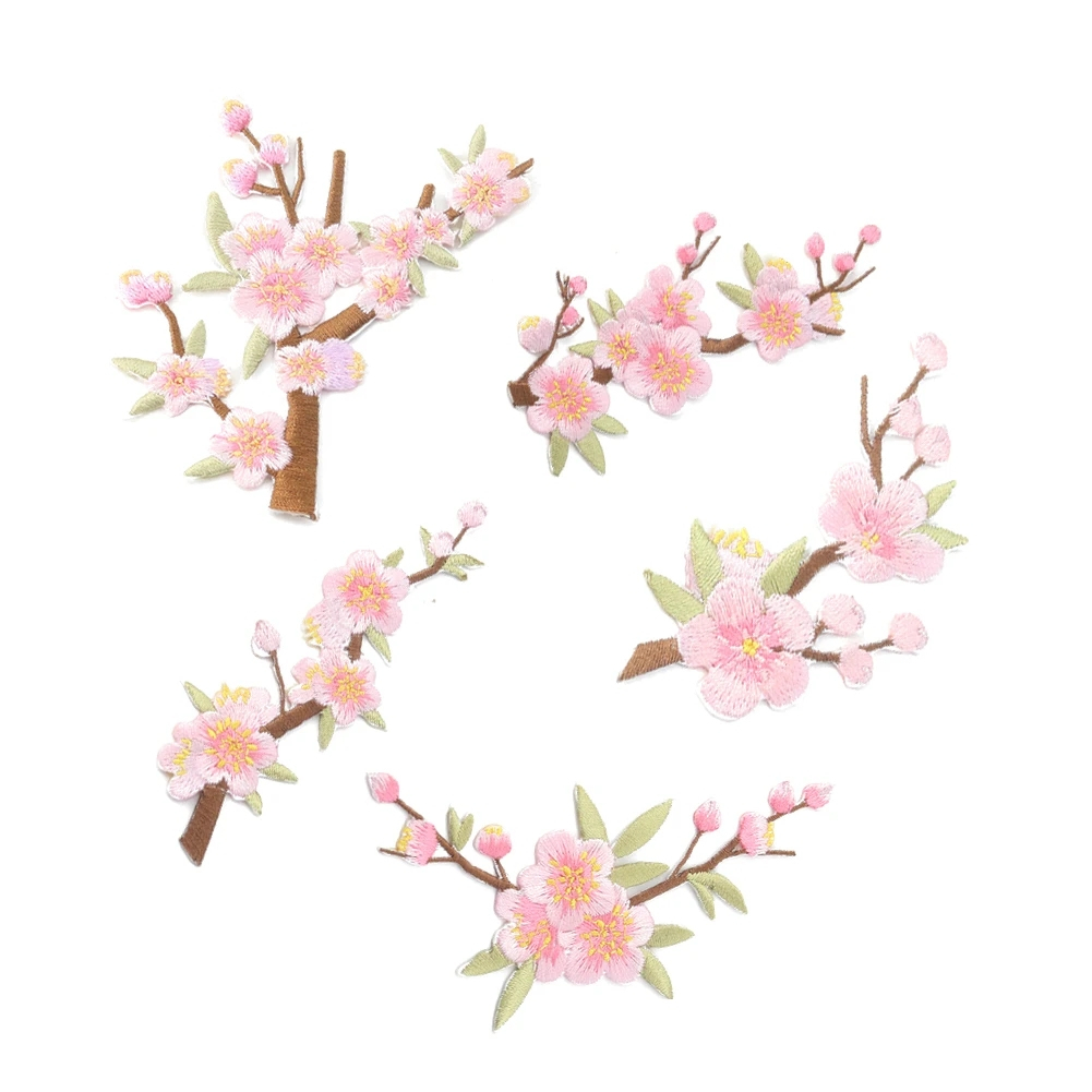 Flower Branch Applique Embroidery Sewing Patch Iron on Glue Sakura Sticker Cheongsam Ornament Pink Plum Bossom Patchwork Patches